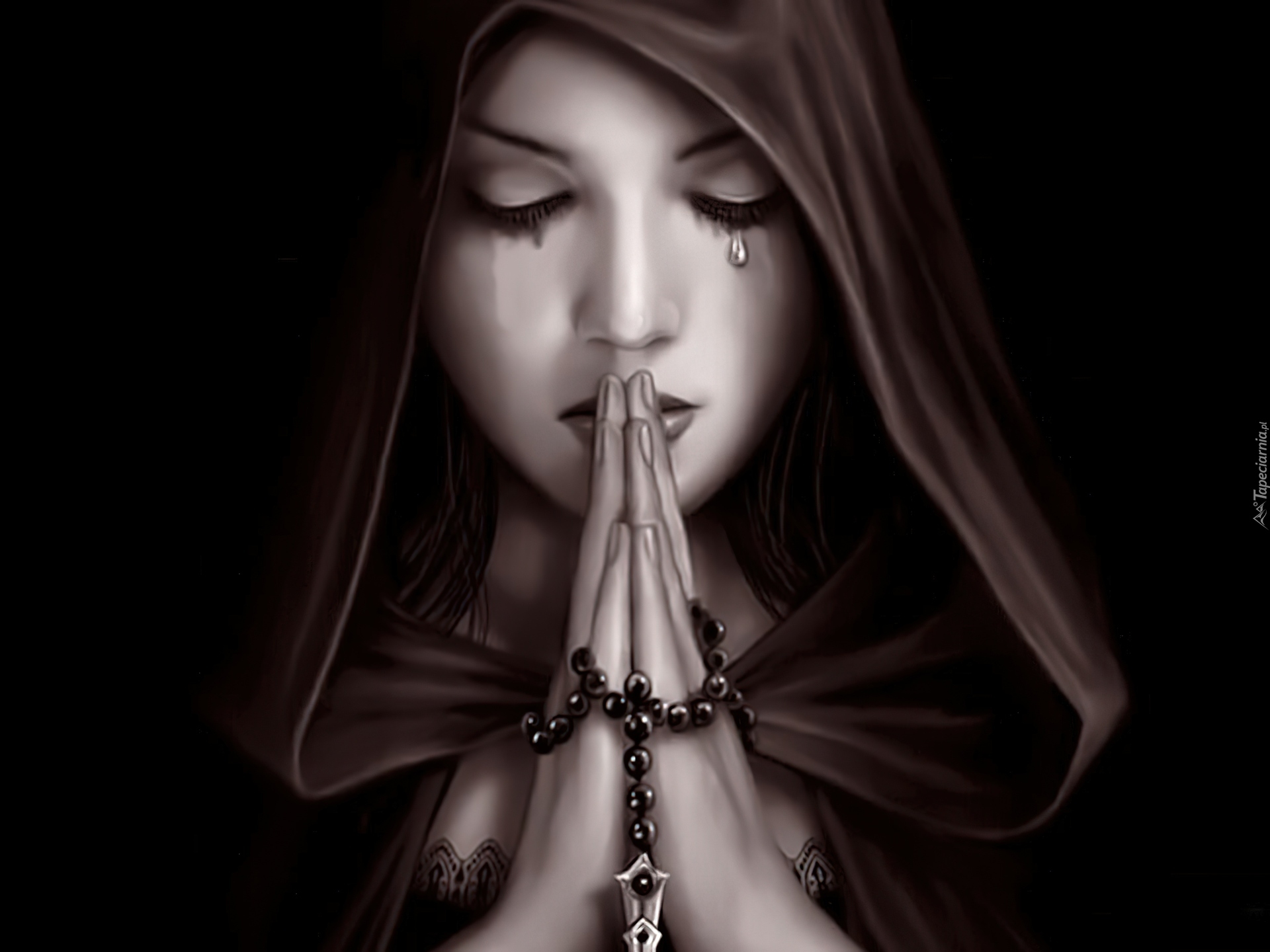 Edytor tapety: Modląca, Się, Kobieta, Różaniec, Łza