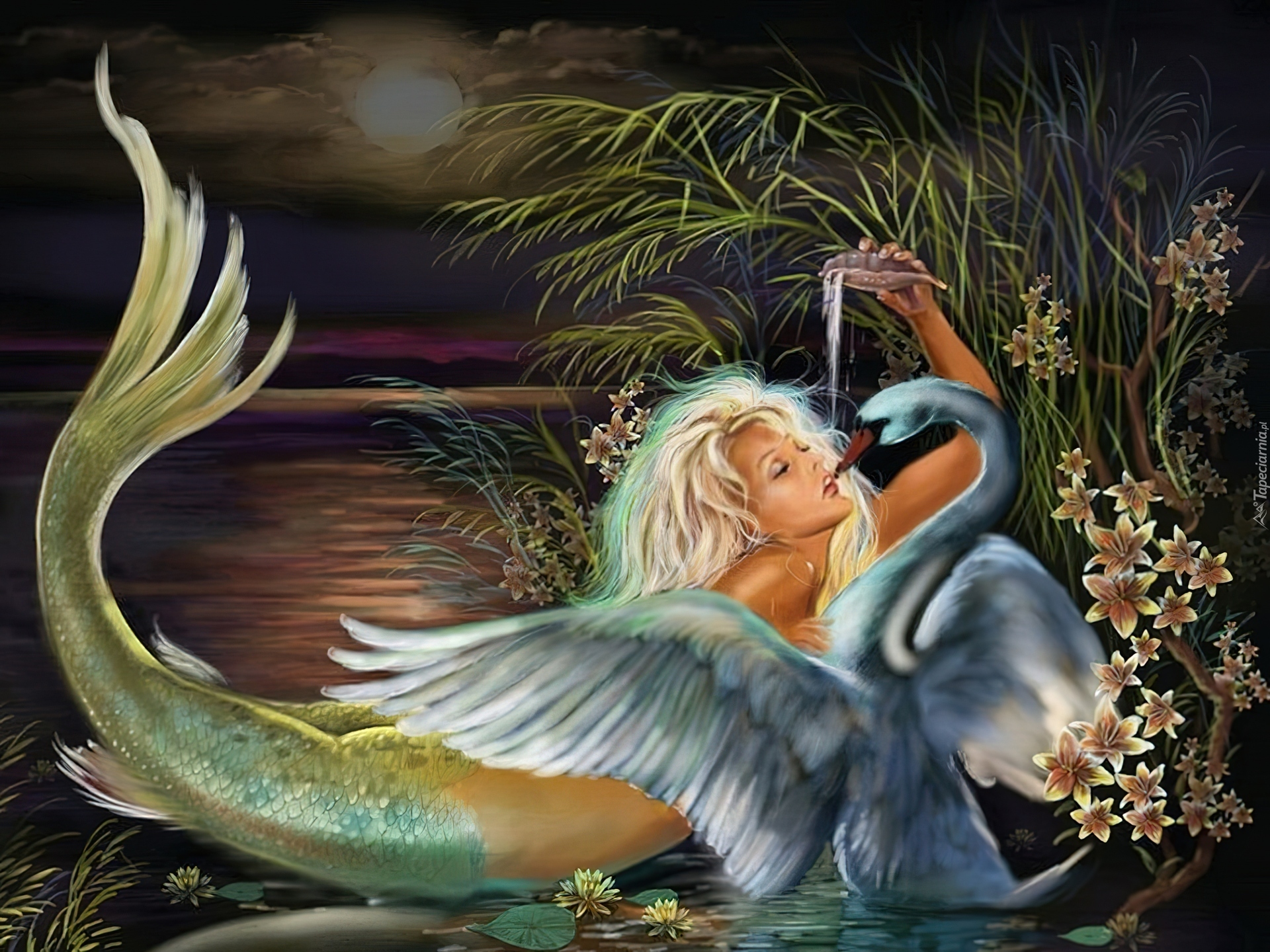 Edytor tapety: Syrena, Łabędź, Woda