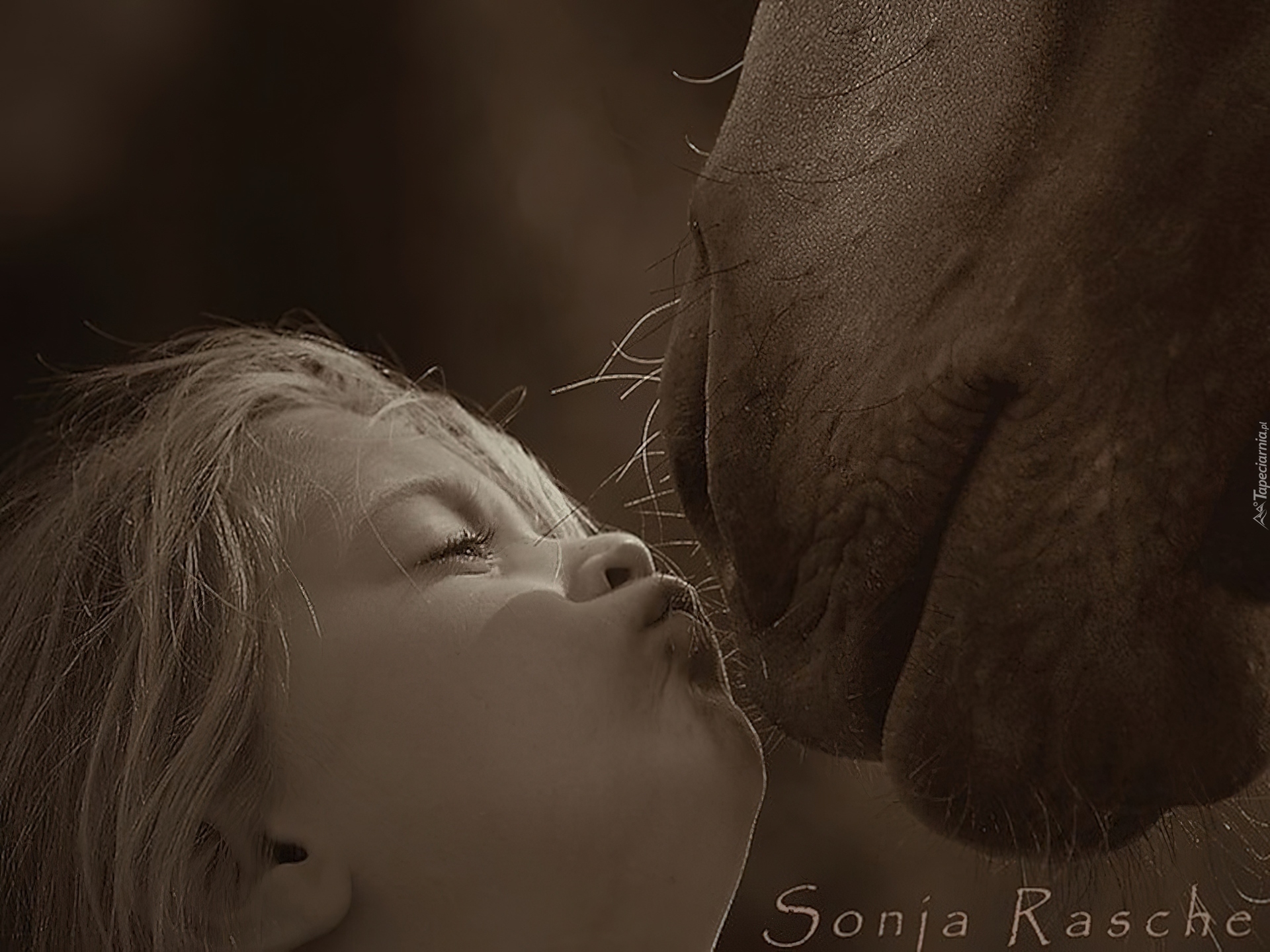 Edytor tapety: Dziewczynka, Pysk, Konia, Pocałunek
