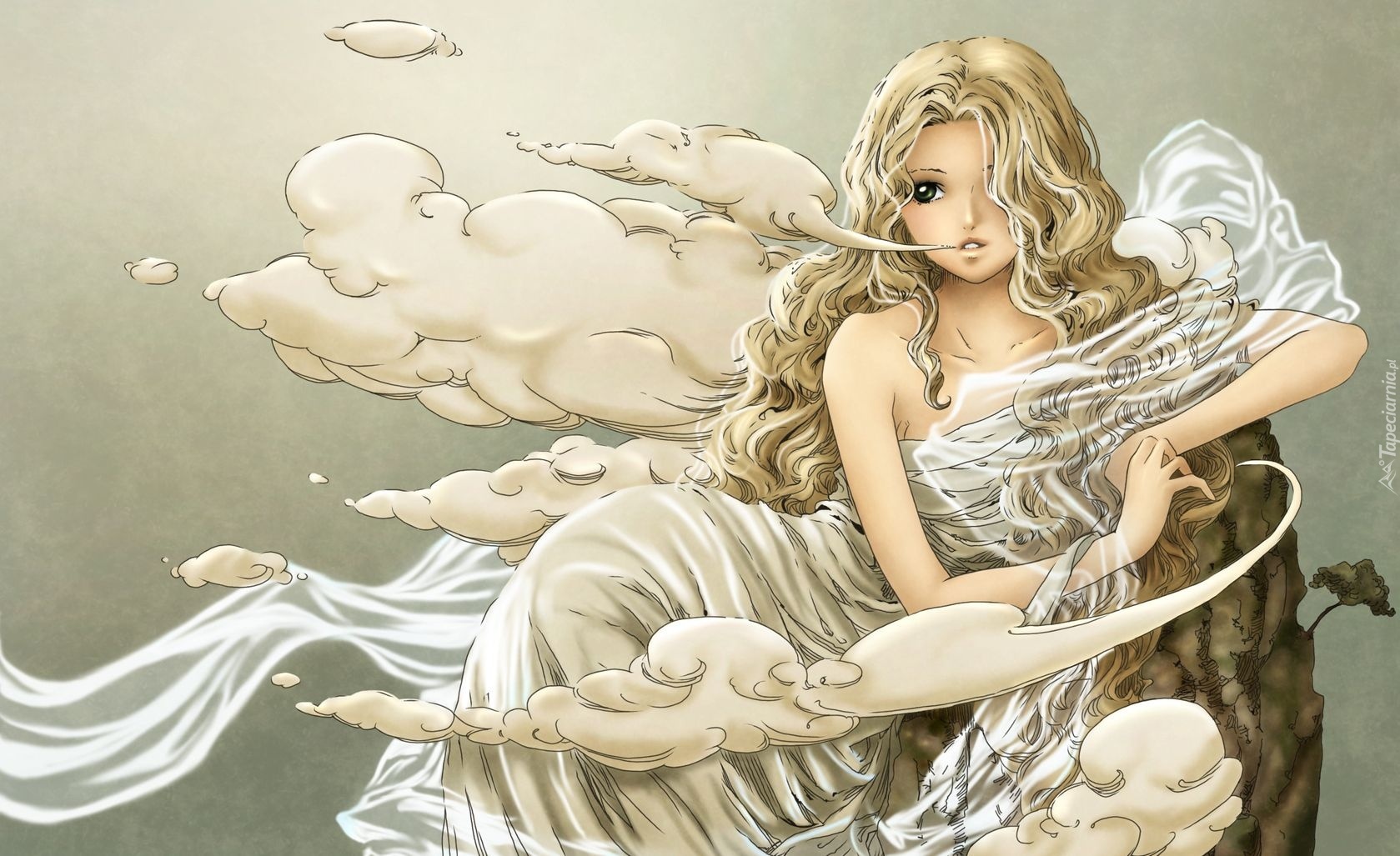 Edytor tapety: Dziewczyna, Chmury, Szal
