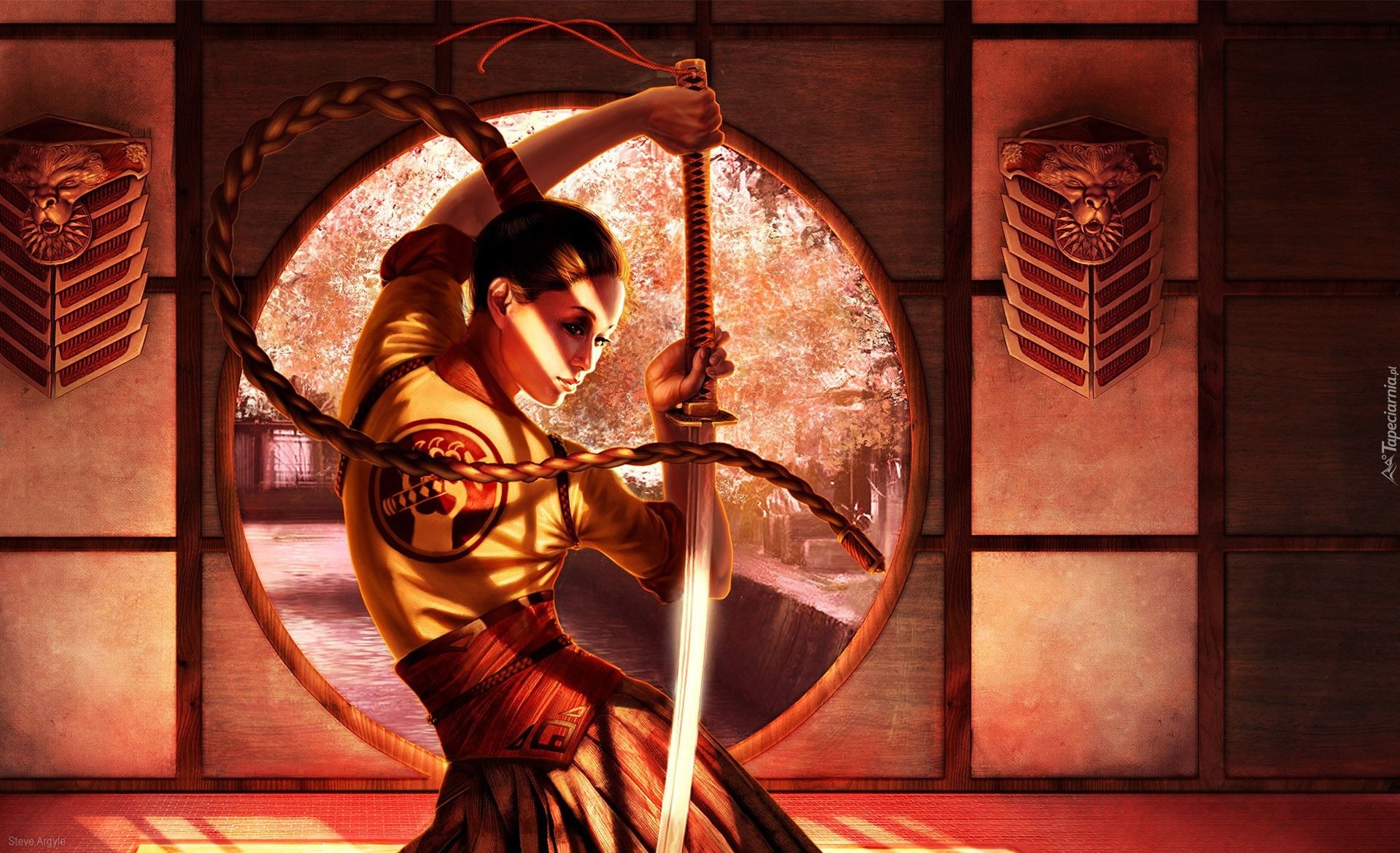 Edytor tapety: Kobieta, Warkocz, Katana
