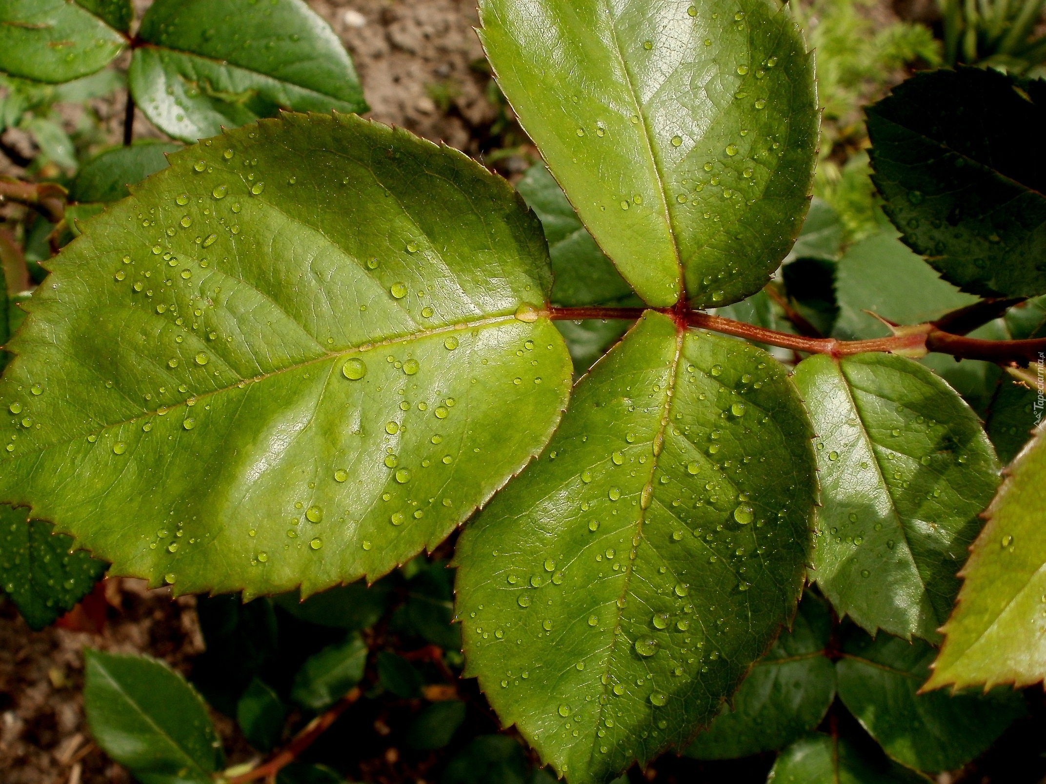 Edytor tapety: Liść, Róży, Krople, Deszczu