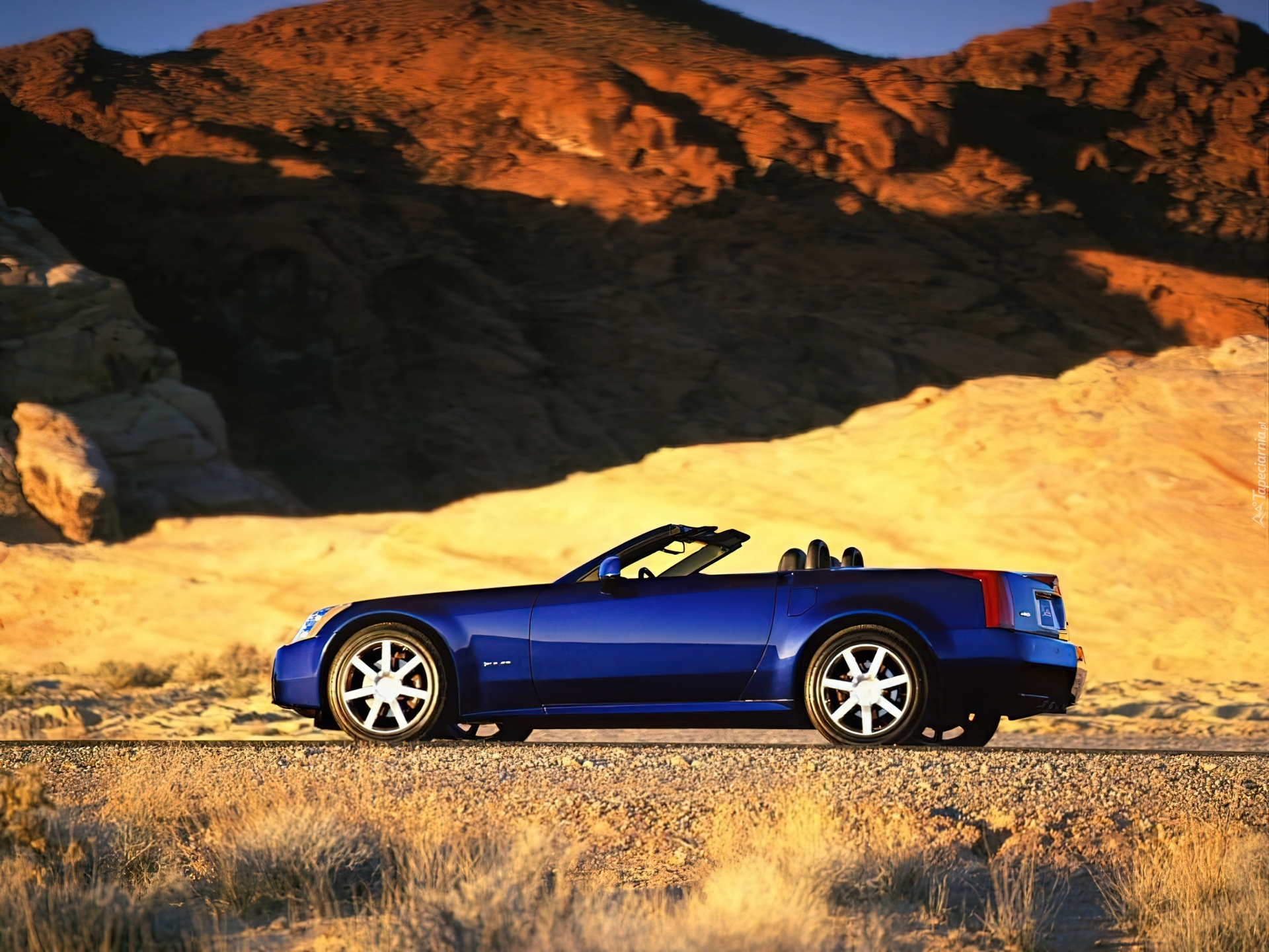 Edytor tapety: niebieski, Cadillac XLR, Pustynia