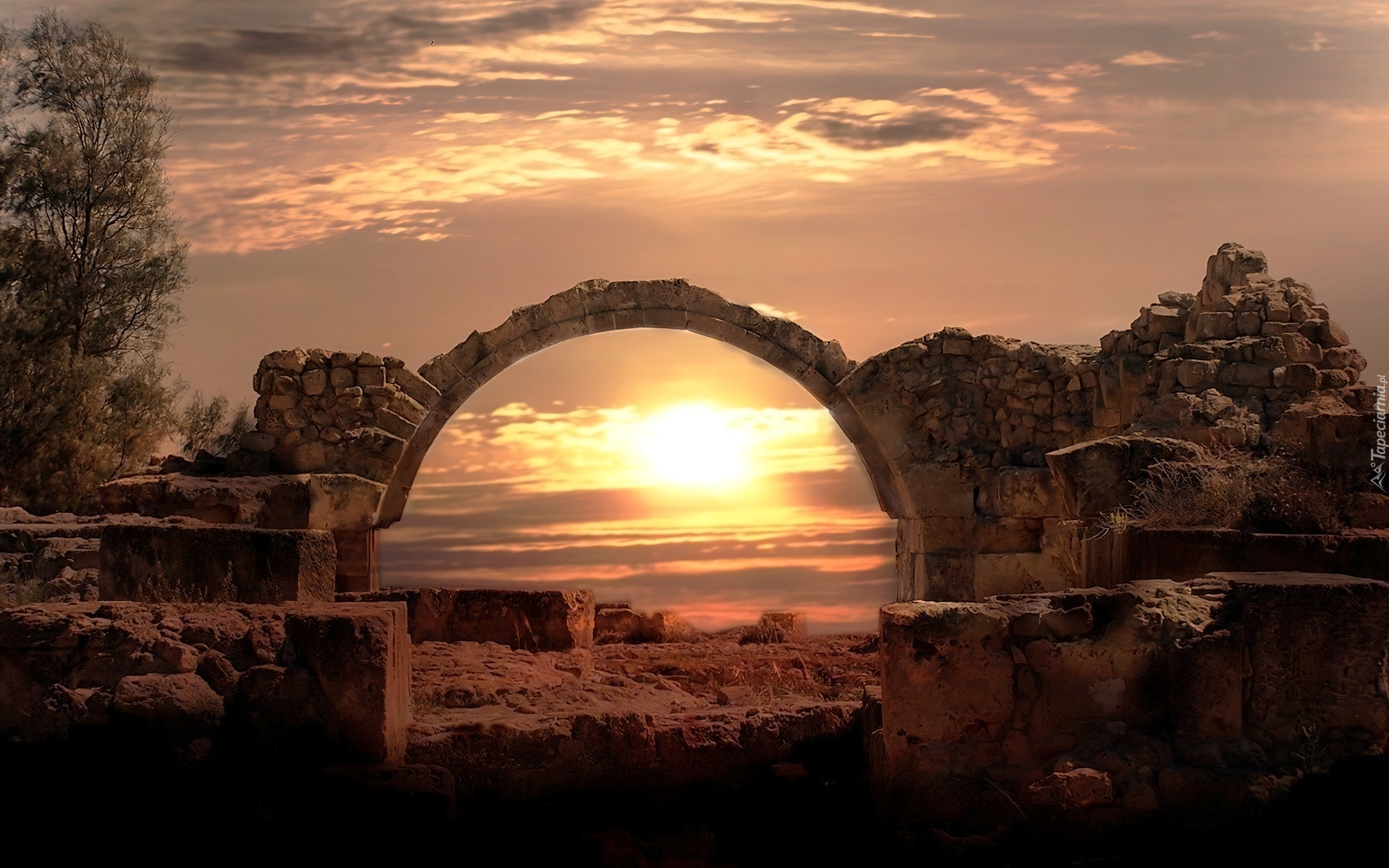 Edytor tapety: Zachód, Słońca, Ruiny