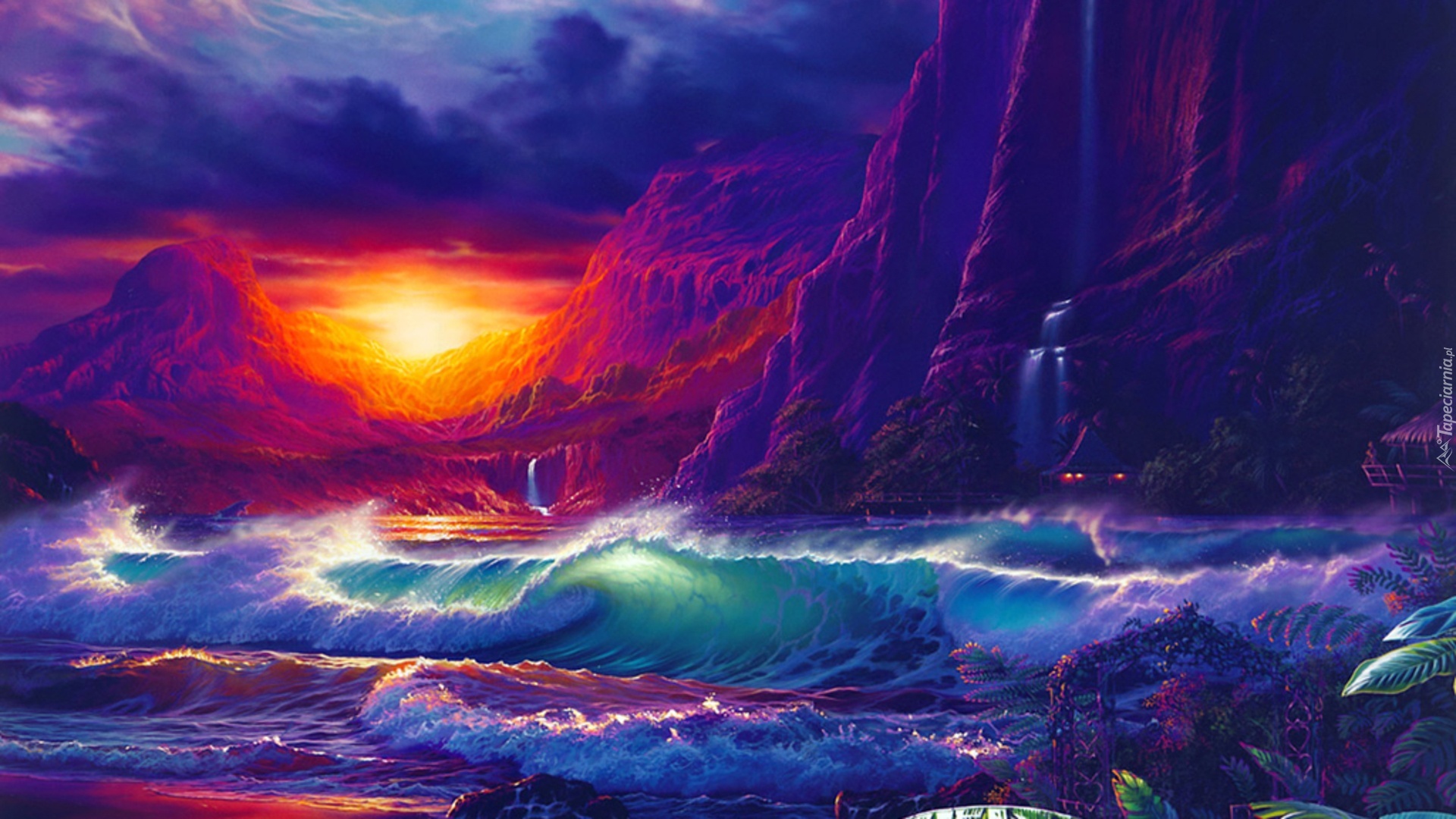 Edytor tapety: Morze, Góry, Zachód, Słońca