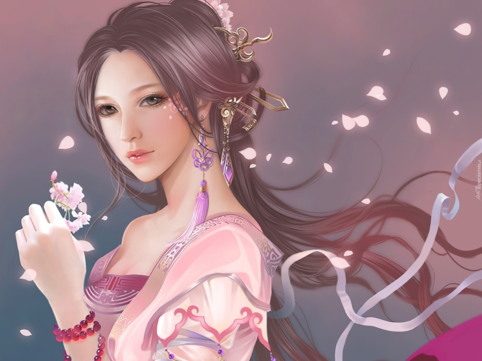 Edytor tapety: Dziewczyna, Kolczyk, Kwiatki, Płatki