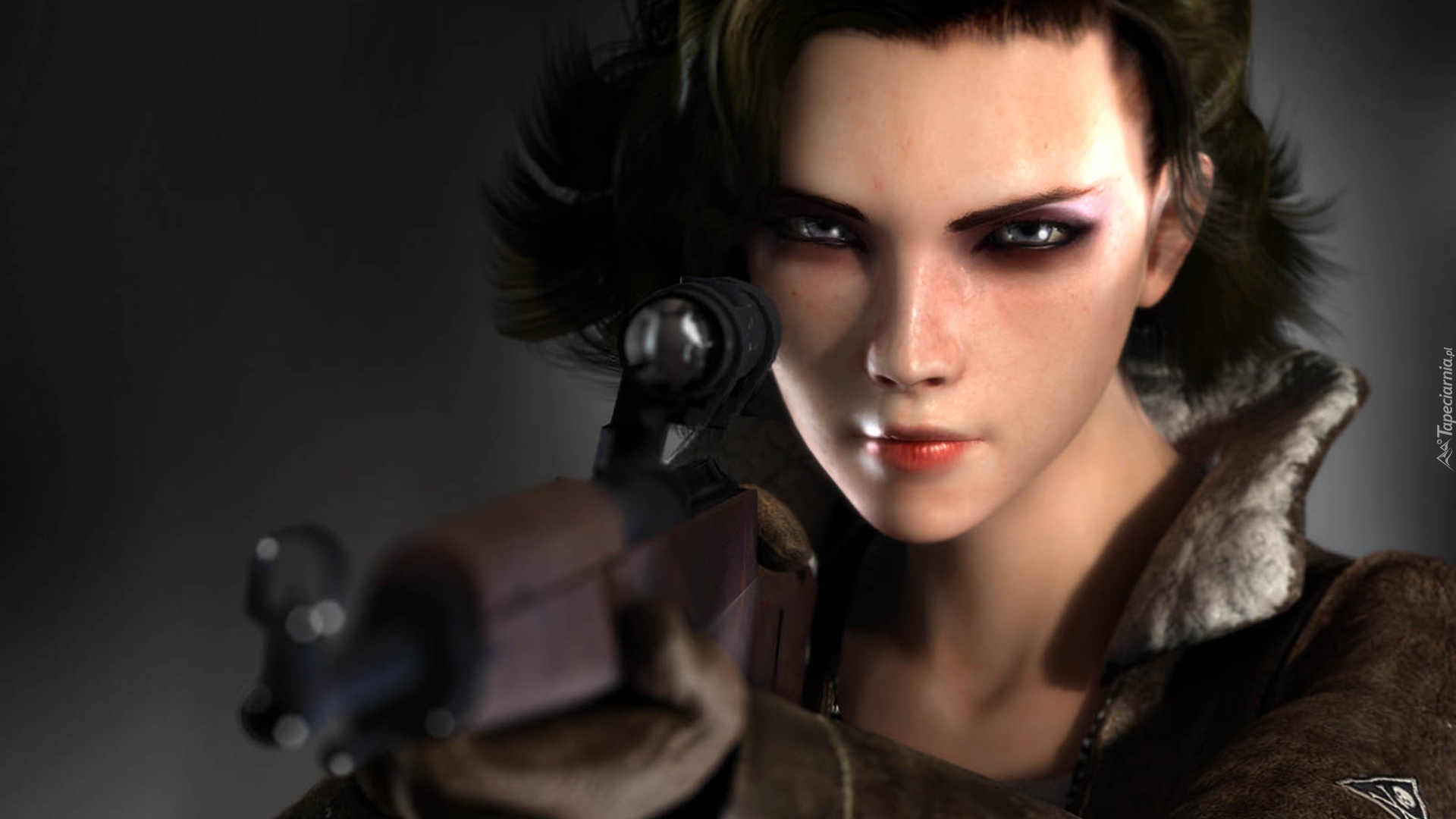 Edytor tapety: Dziewczyna, Spojrzenie, Broń