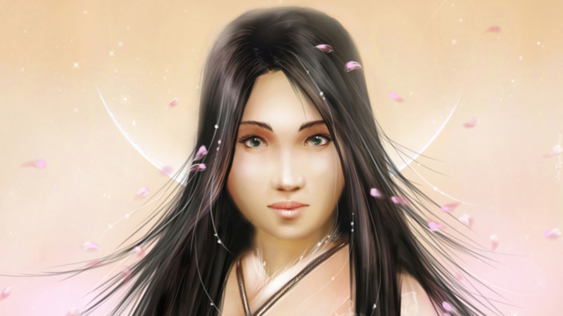 Edytor tapety: Dziewczyna, Zielone, Oczy, Płatki