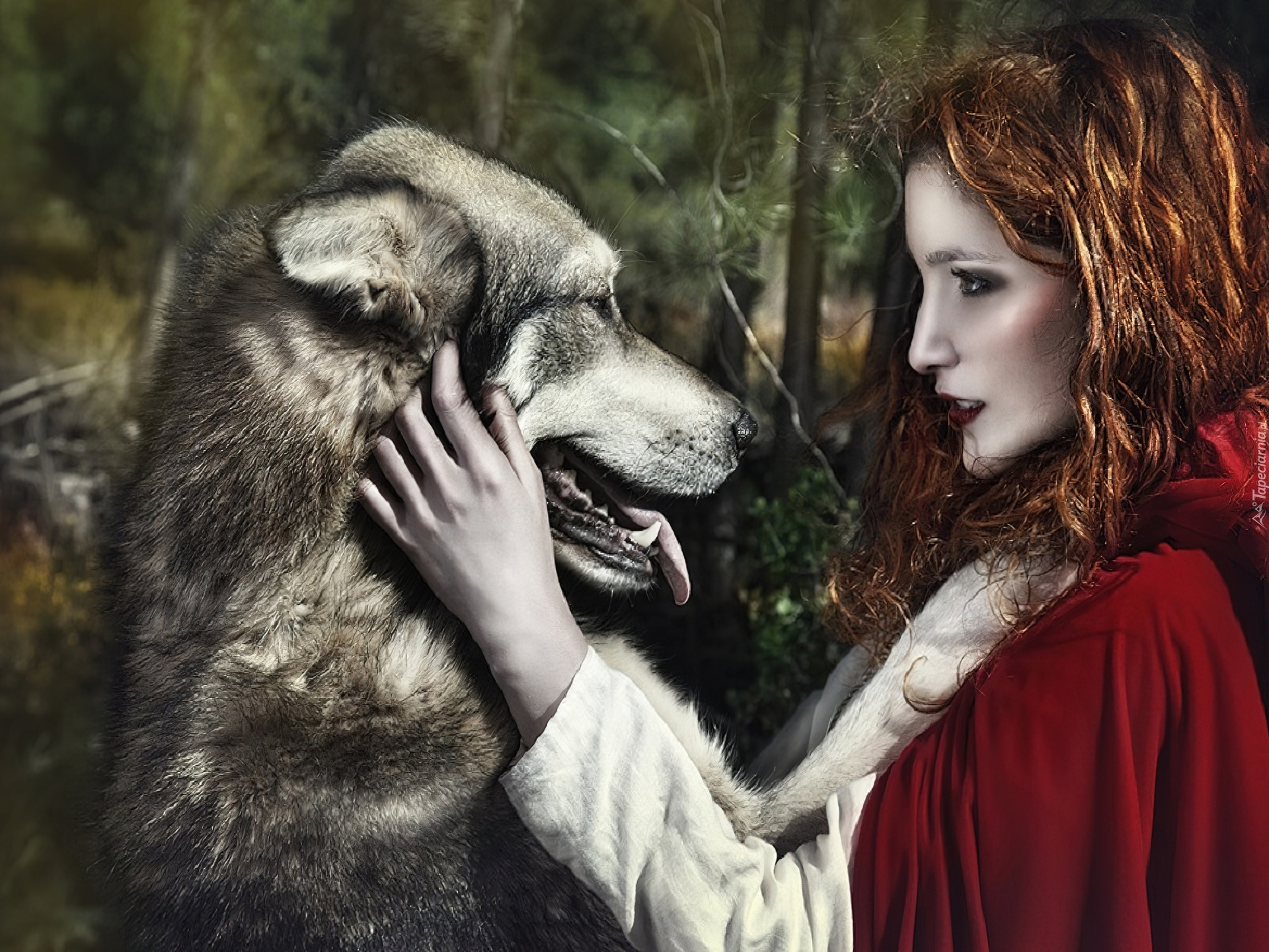 Edytor tapety: Wilk, Kobieta, Czerwony, Kapturek