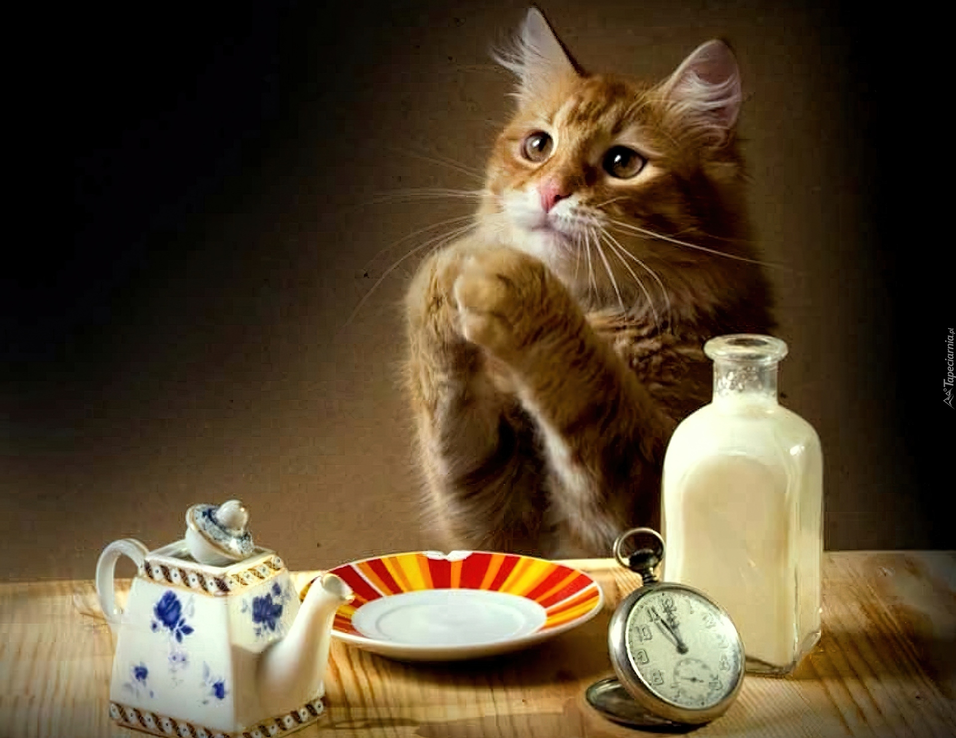 Edytor tapety: Modlący, Się, Kot, Śniadanie