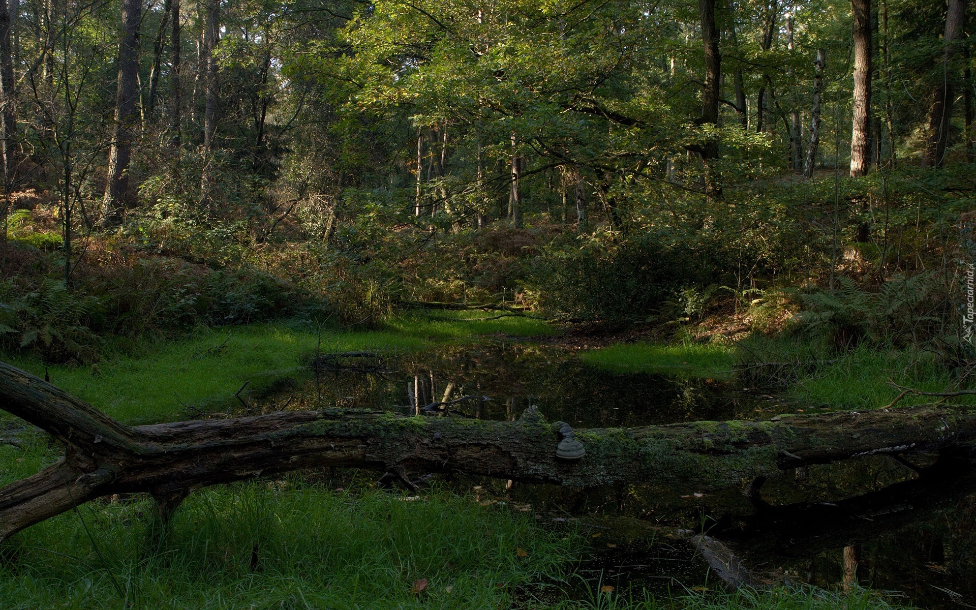 Edytor tapety: Krajobraz, Las, Drzewa, Mech, Trawa