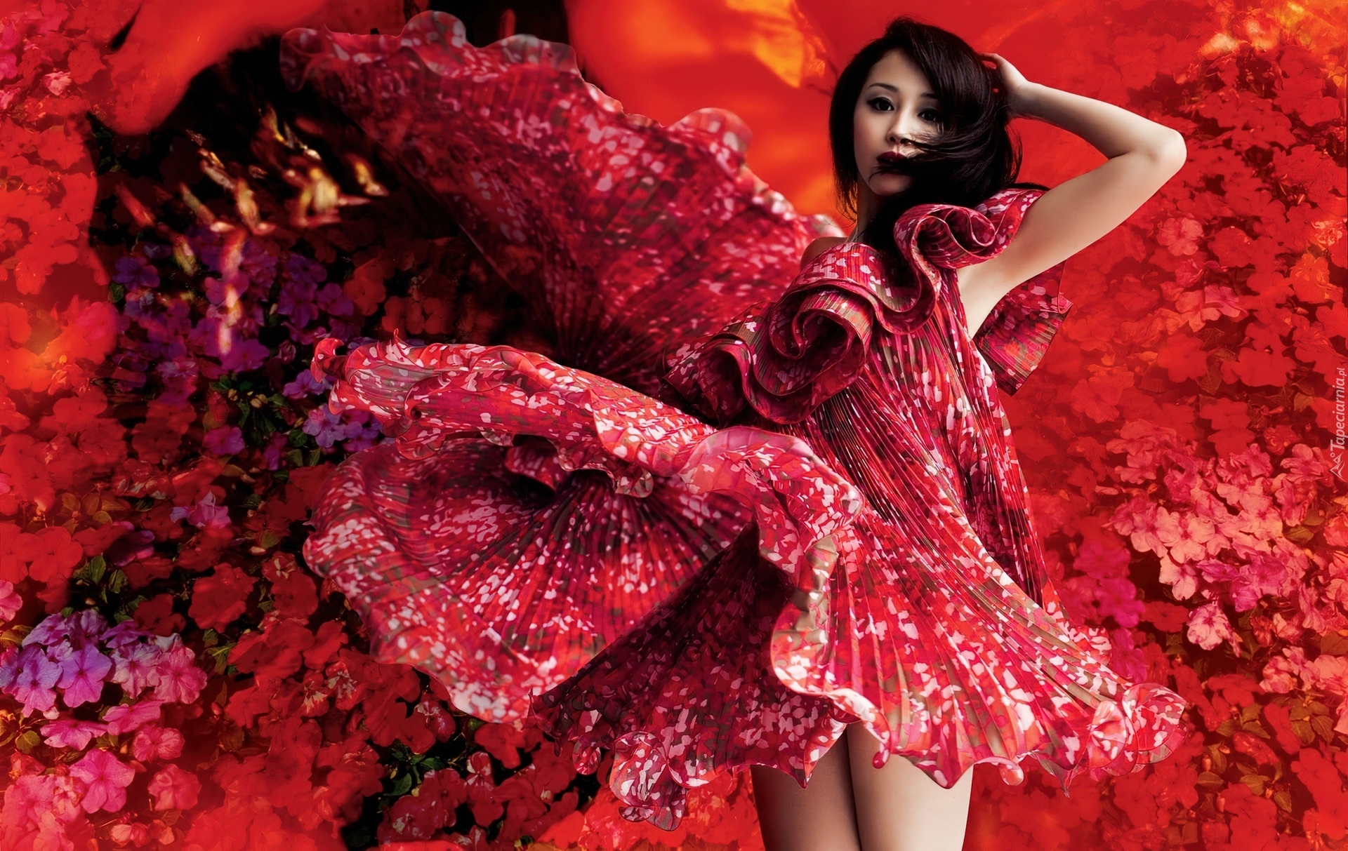Edytor tapety: Kobieta, Czerwona, Sukienka