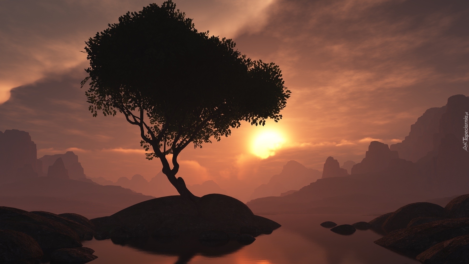 Edytor tapety: Krajobraz, Zachód, Słońca, Drzewo