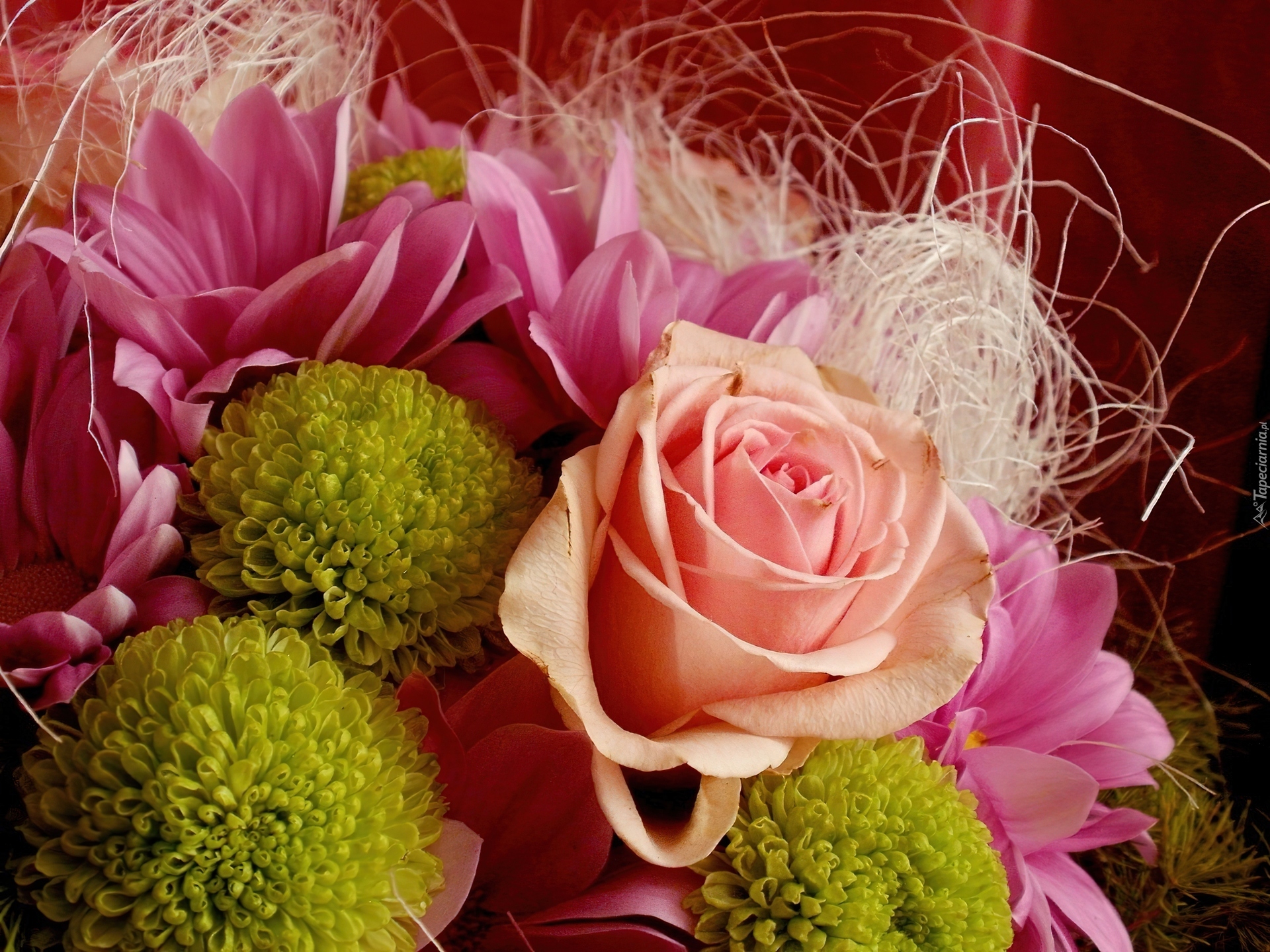 Edytor tapety: Bukiet, Kwiatów, Róża, Margaretki, Czosnek, Ozdobny