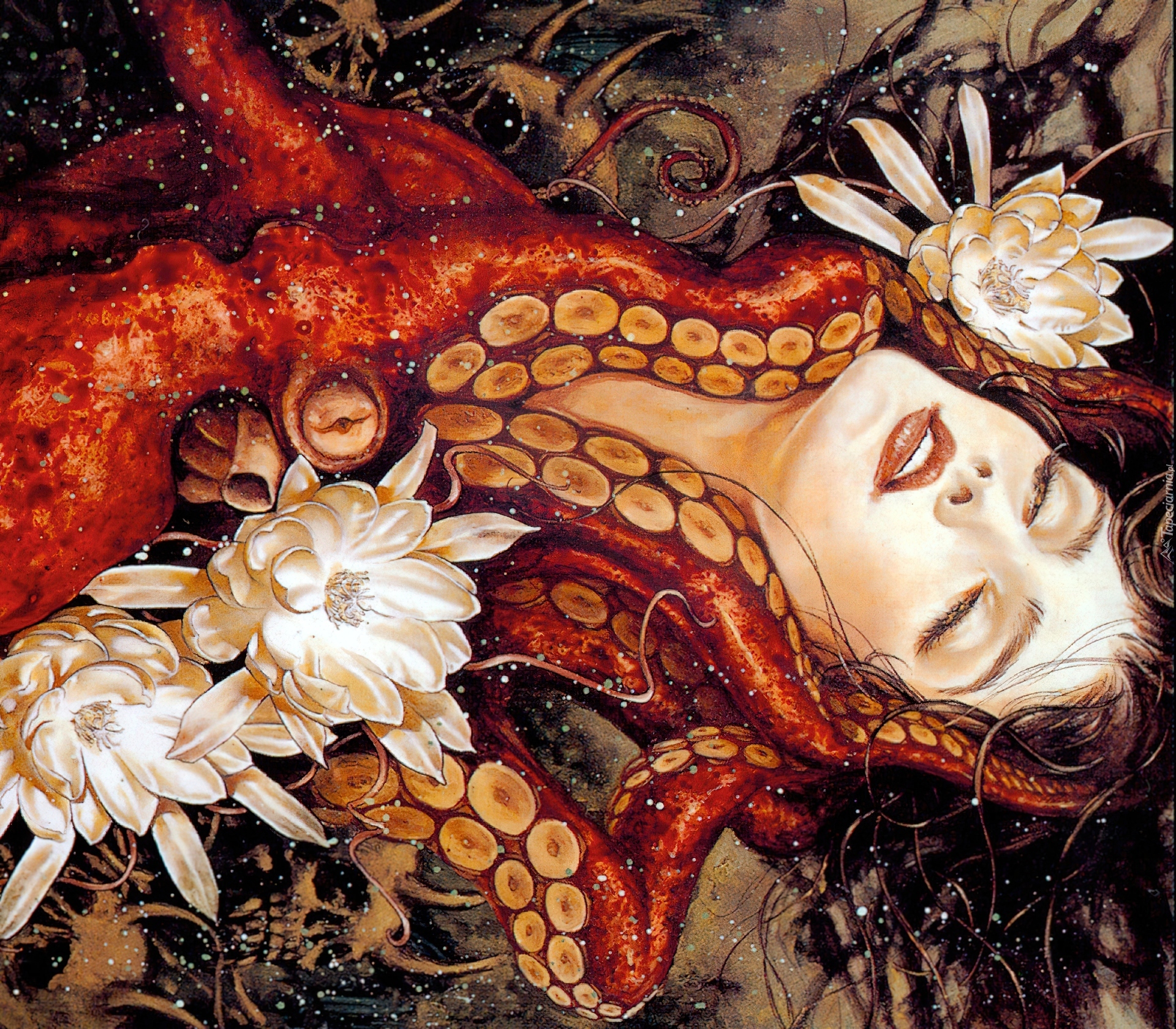 Edytor tapety: Dziewczyna, Macki, Kwiaty