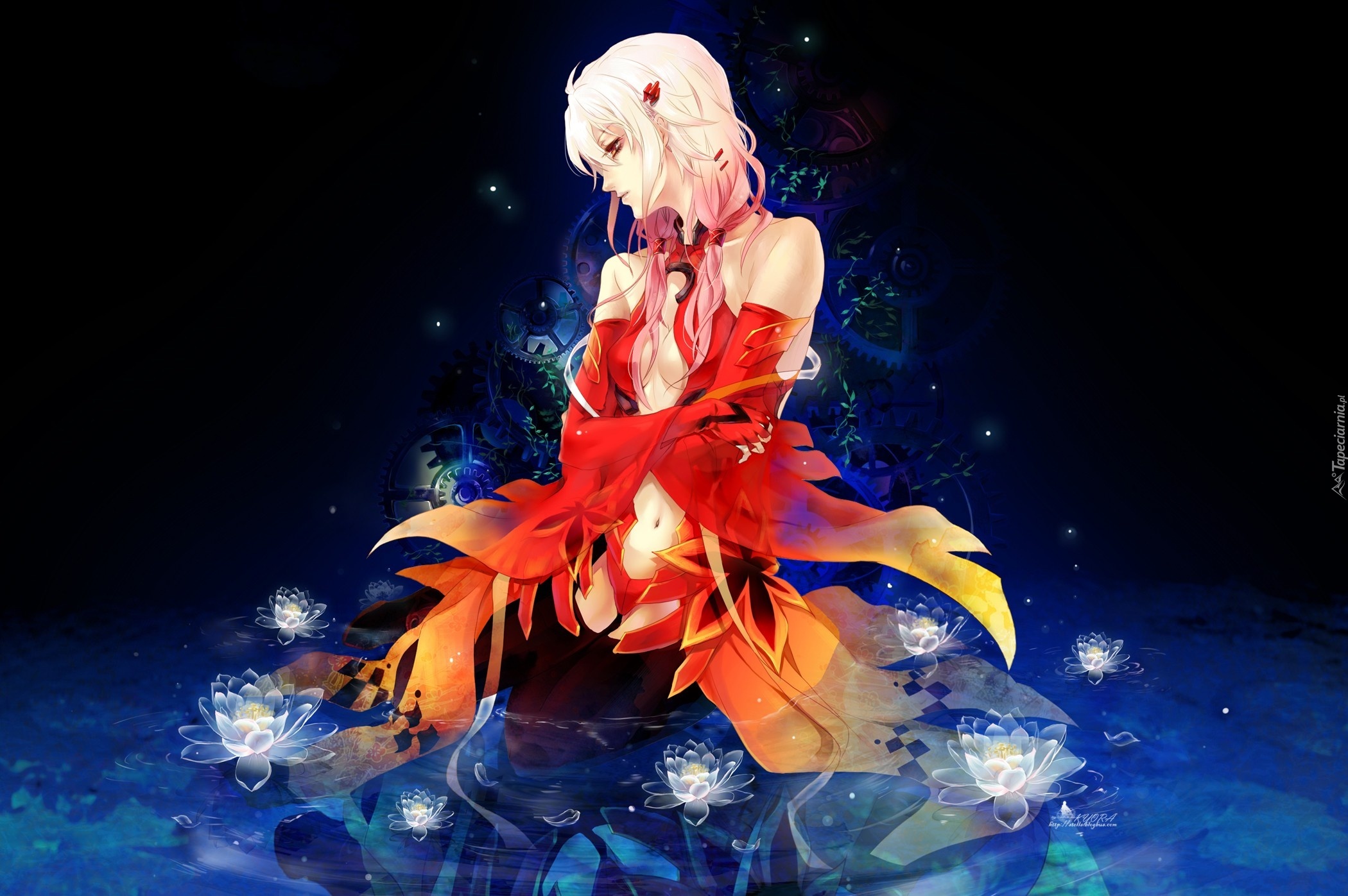 Edytor tapety: Dziewczyna, Woda, Lilie