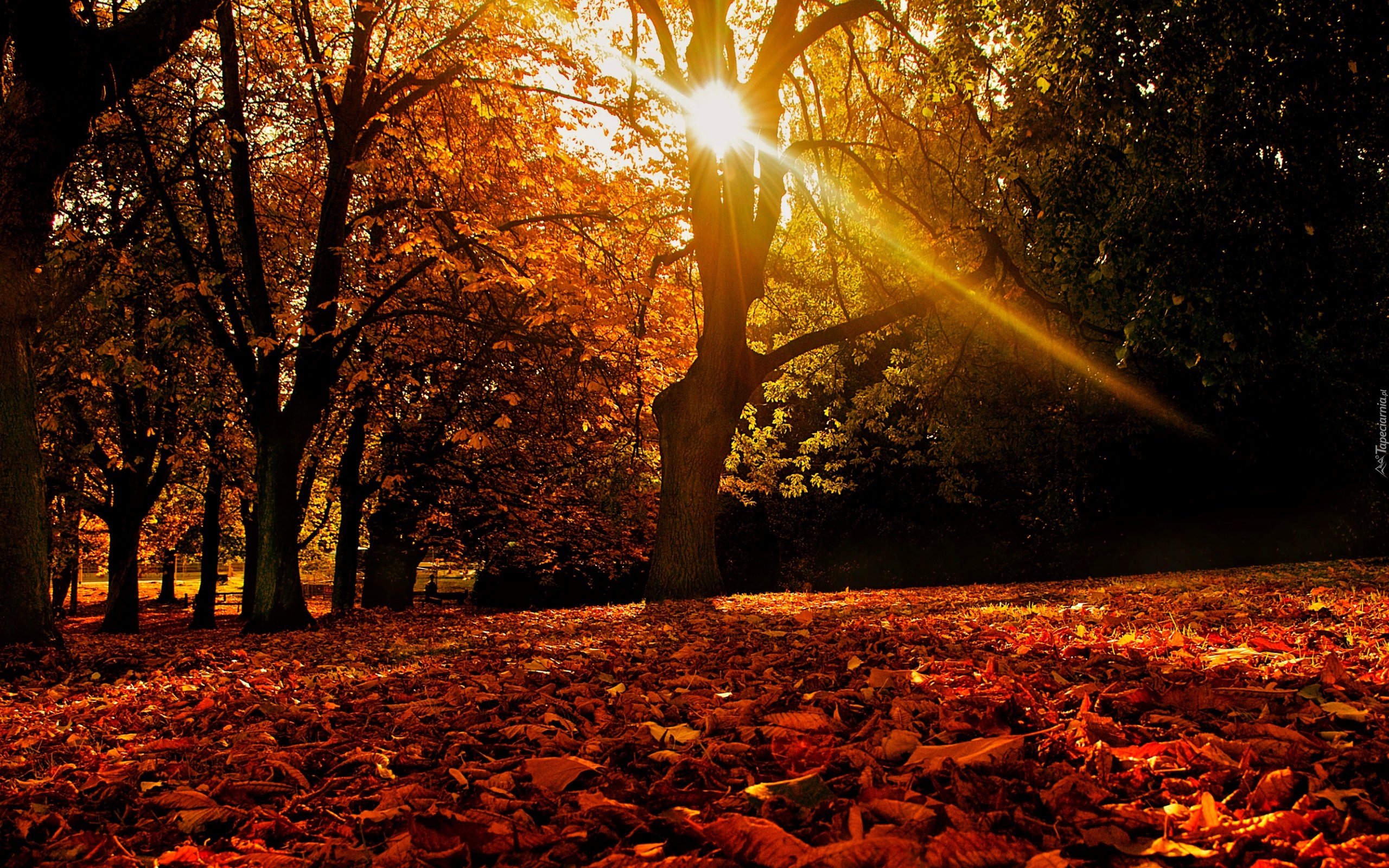 Edytor tapety: Jesień, Las, Przebijające, Światło