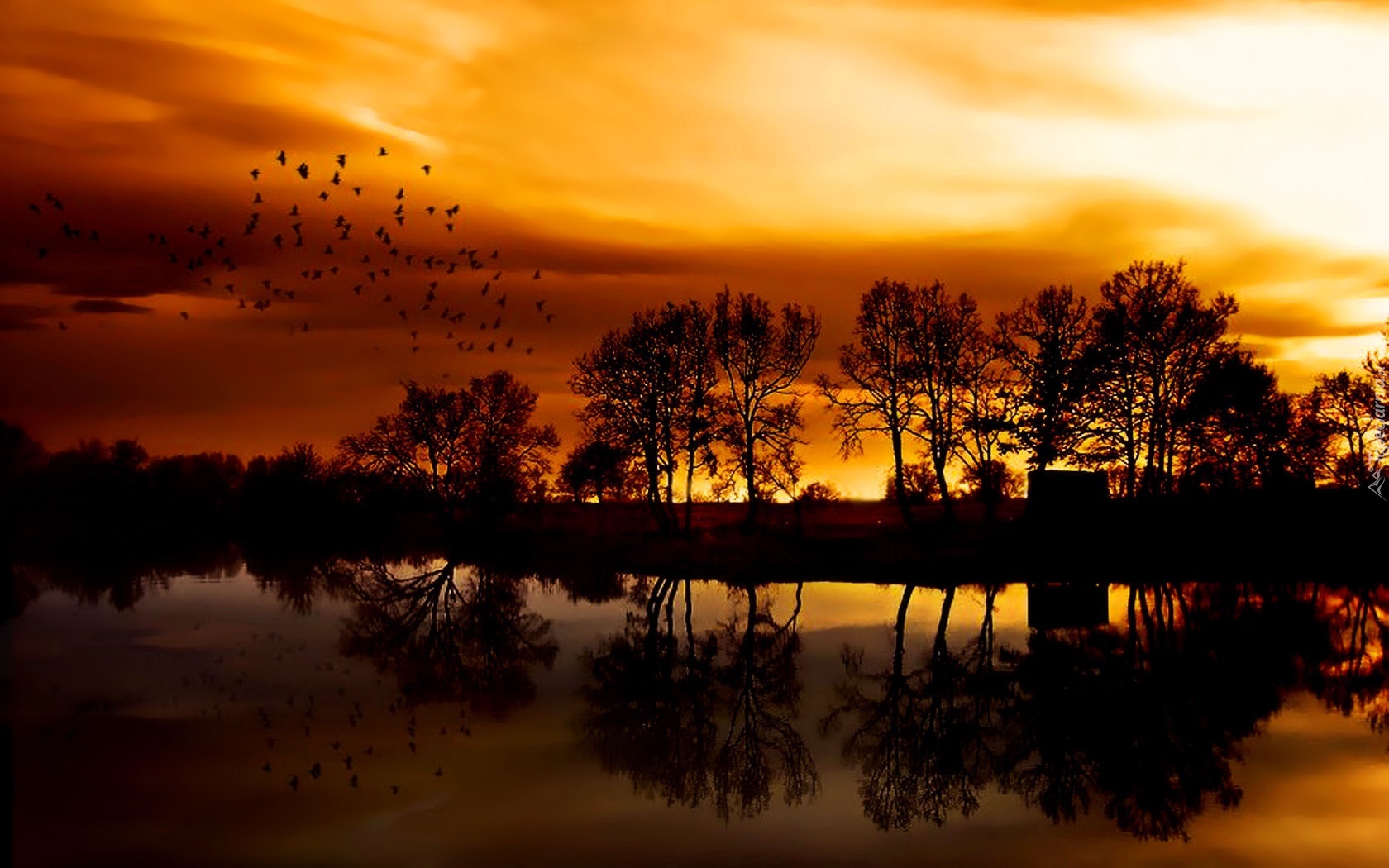 Edytor tapety: Zachód, Słońca, Ptaki