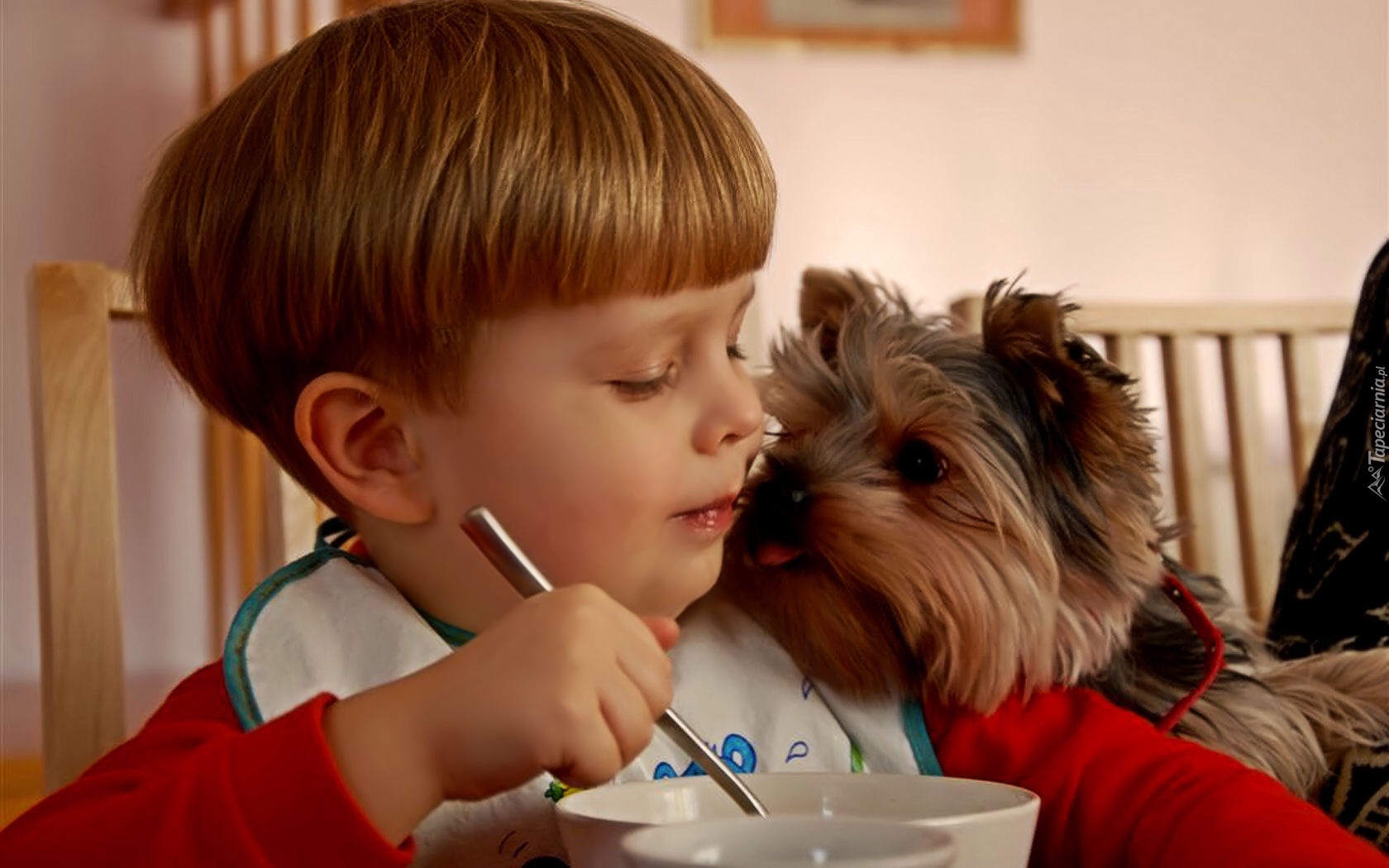 Edytor tapety: Dziecko, Pies, Posiłek