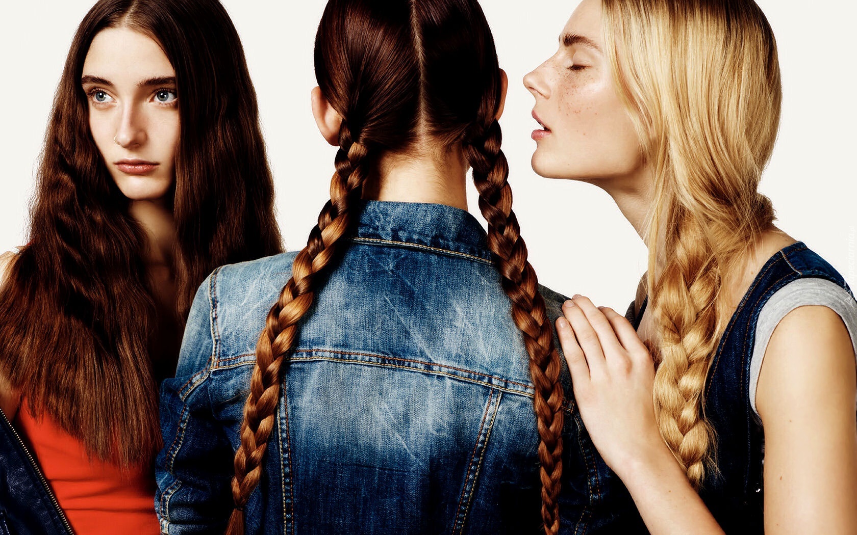 Edytor tapety: Trzy, Kobiety, Warkocze