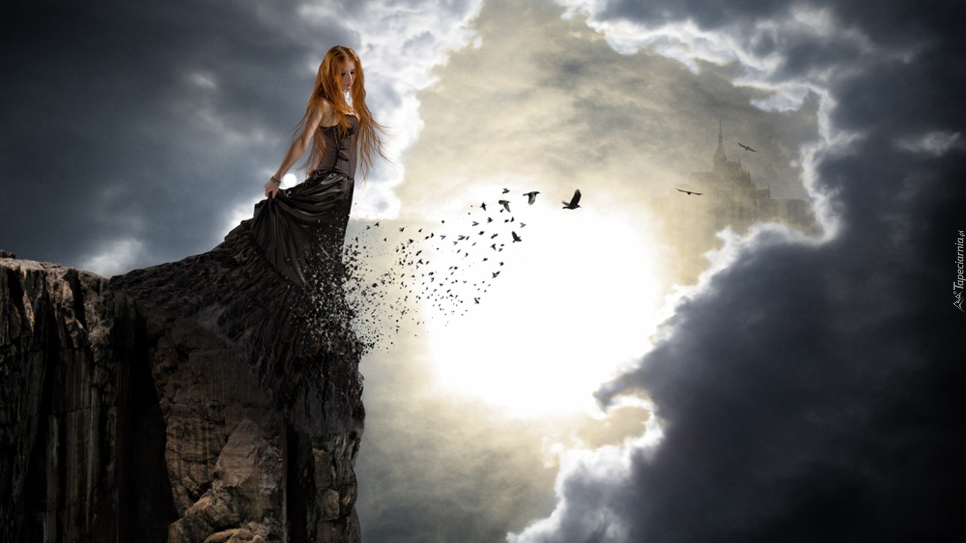 Edytor tapety: Dziewczyna, Na, Krawędzi, Ptaki