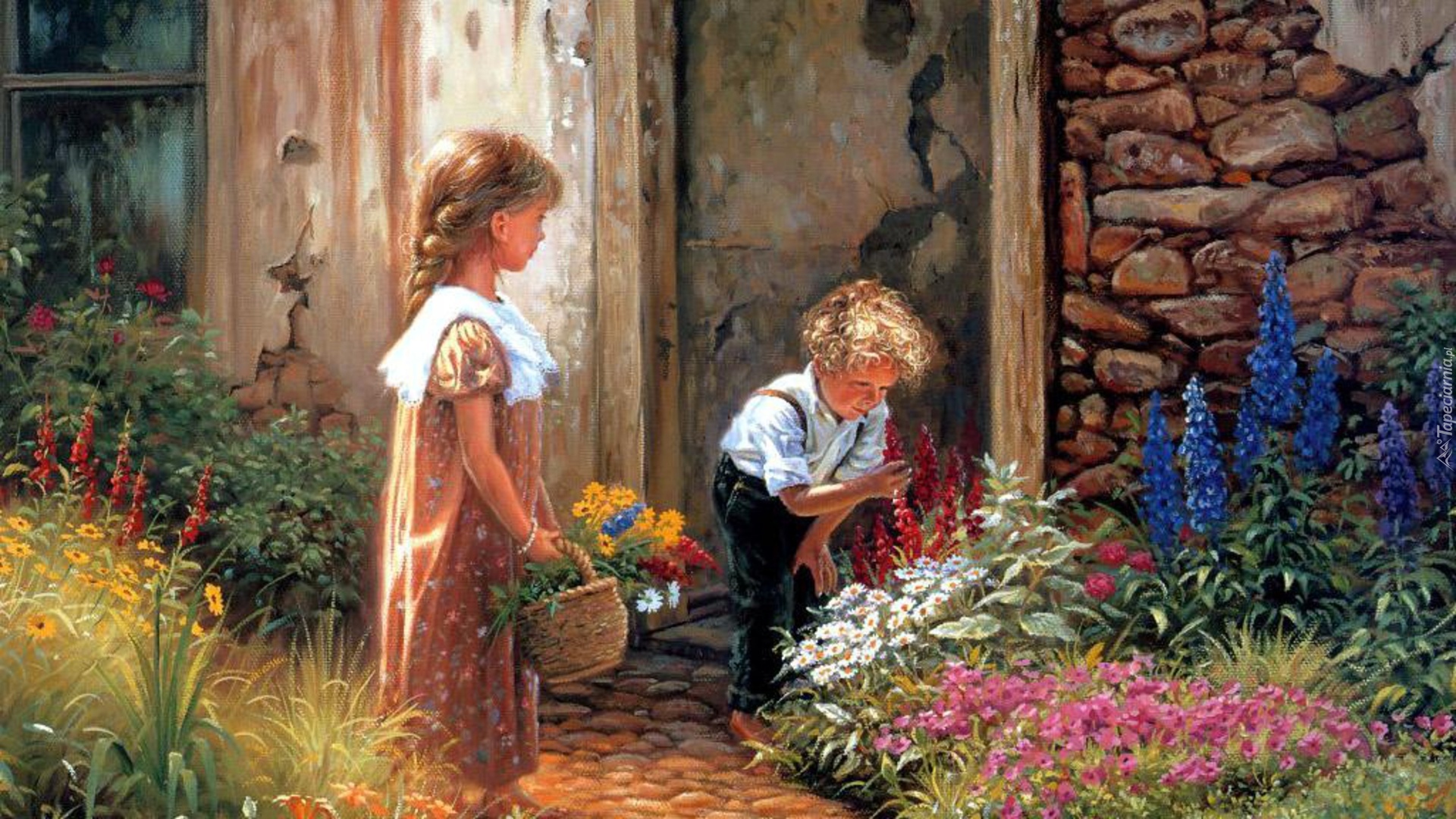 Edytor tapety: Dziewczynka, Chłopiec, Kwiatki, Donald Zolan