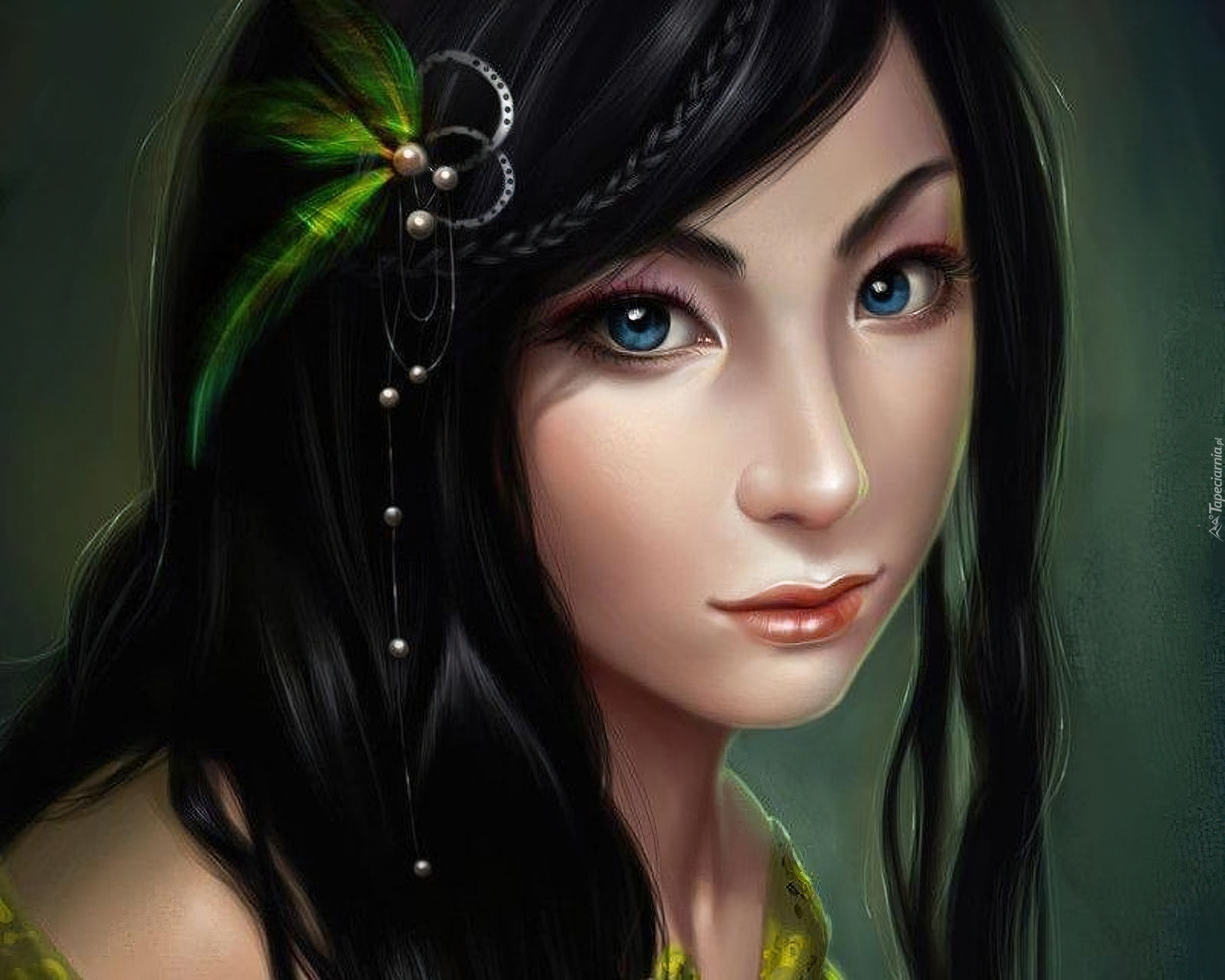 Edytor tapety: Dziewczyna, Niebieskie, Oczy, Spinka