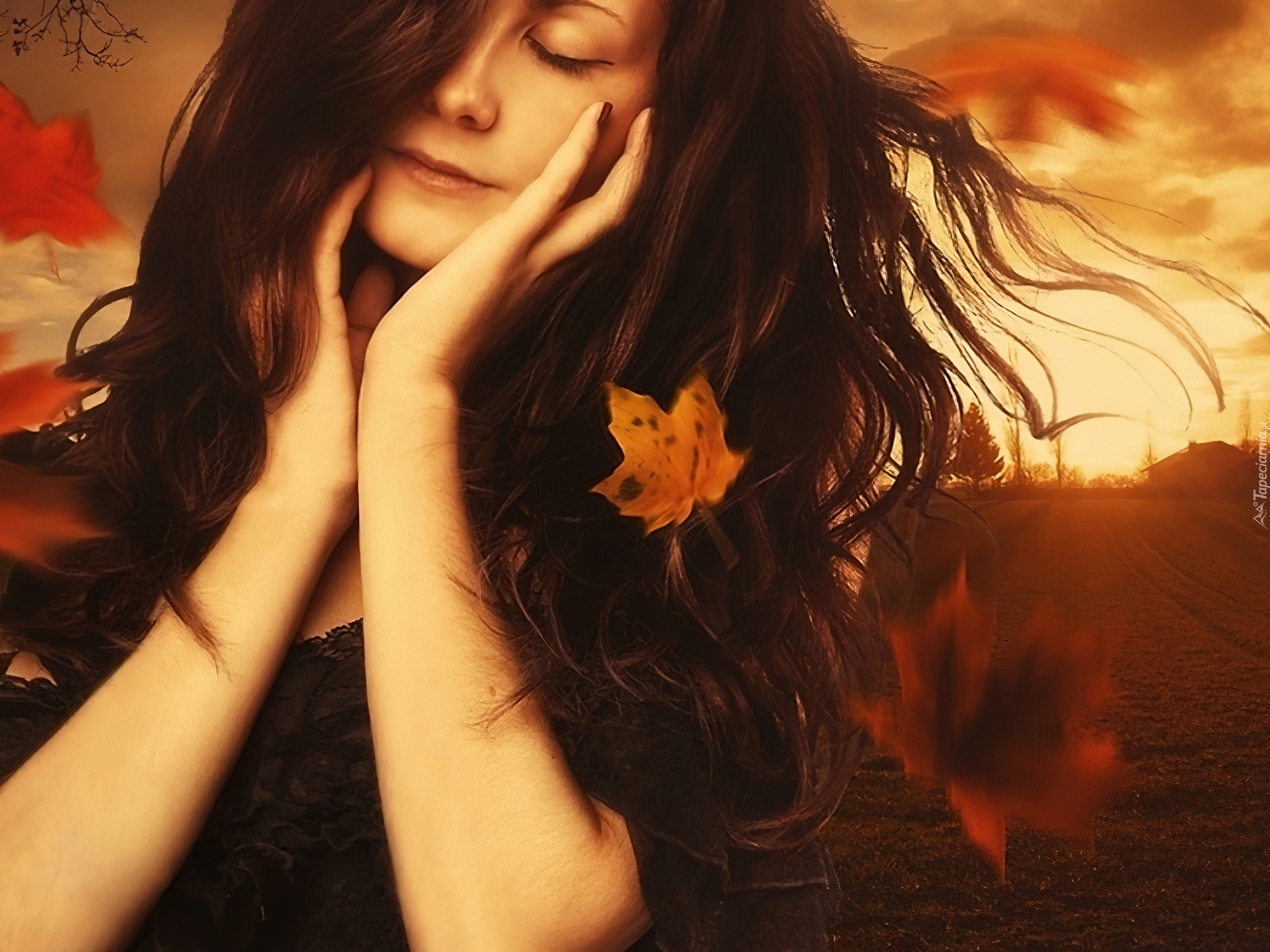 Edytor tapety: Kobieta, Dłonie, Liście