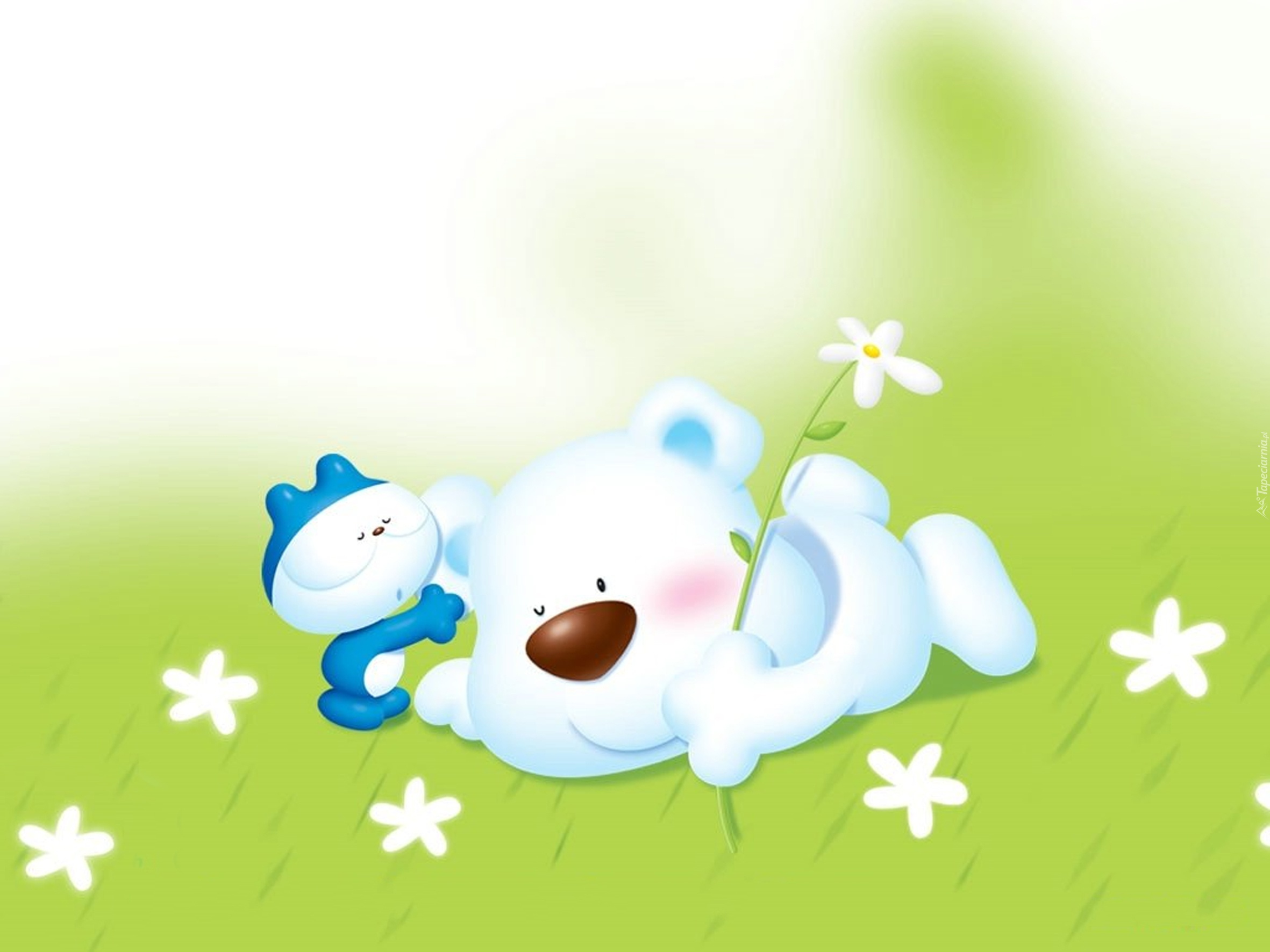 Edytor tapety: Biały, Misiu, Zabawka, Łąka