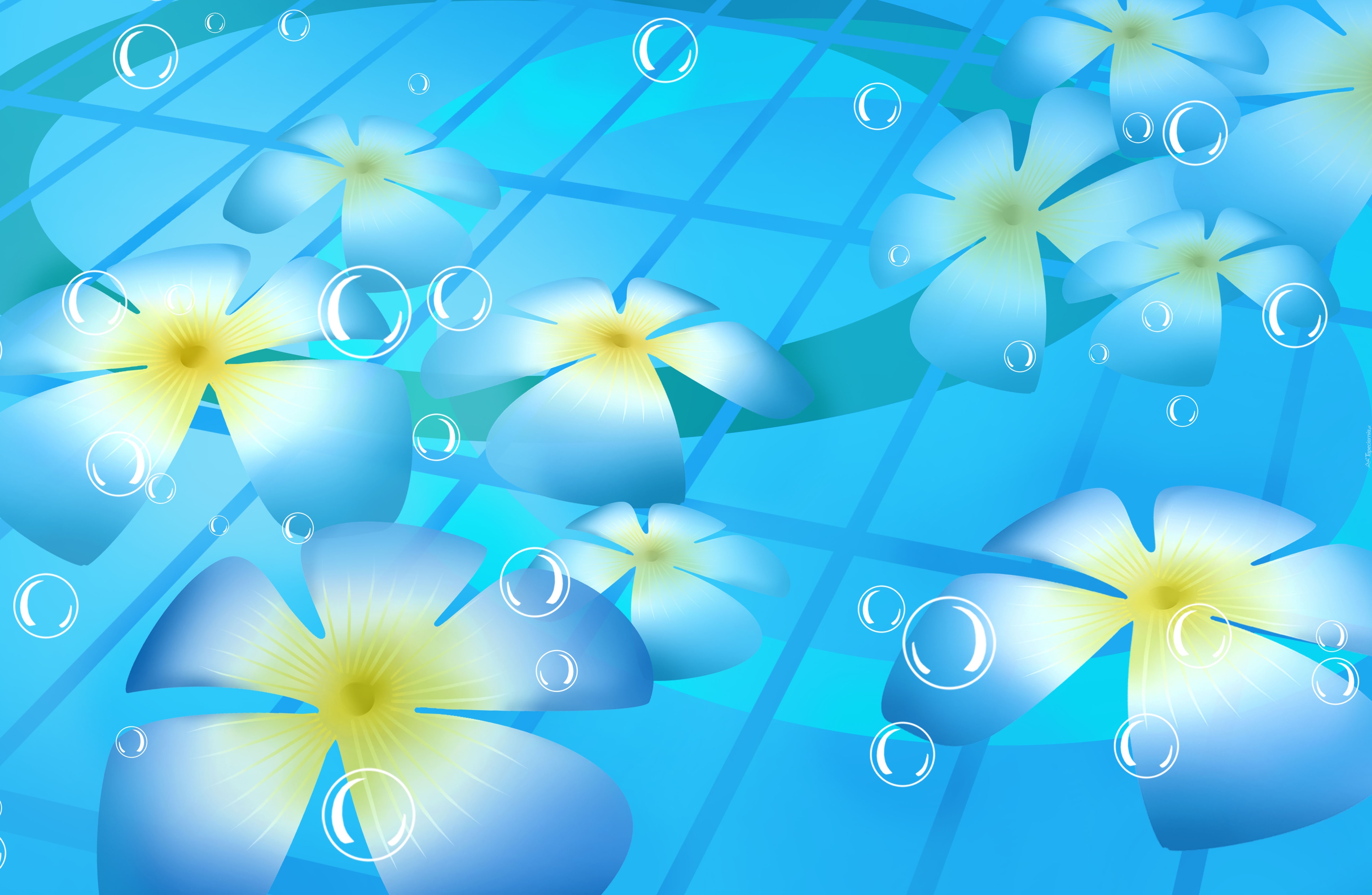 Edytor tapety: Niebiesko, Żółte, Kwiaty, Bąbelki, Wektorowe