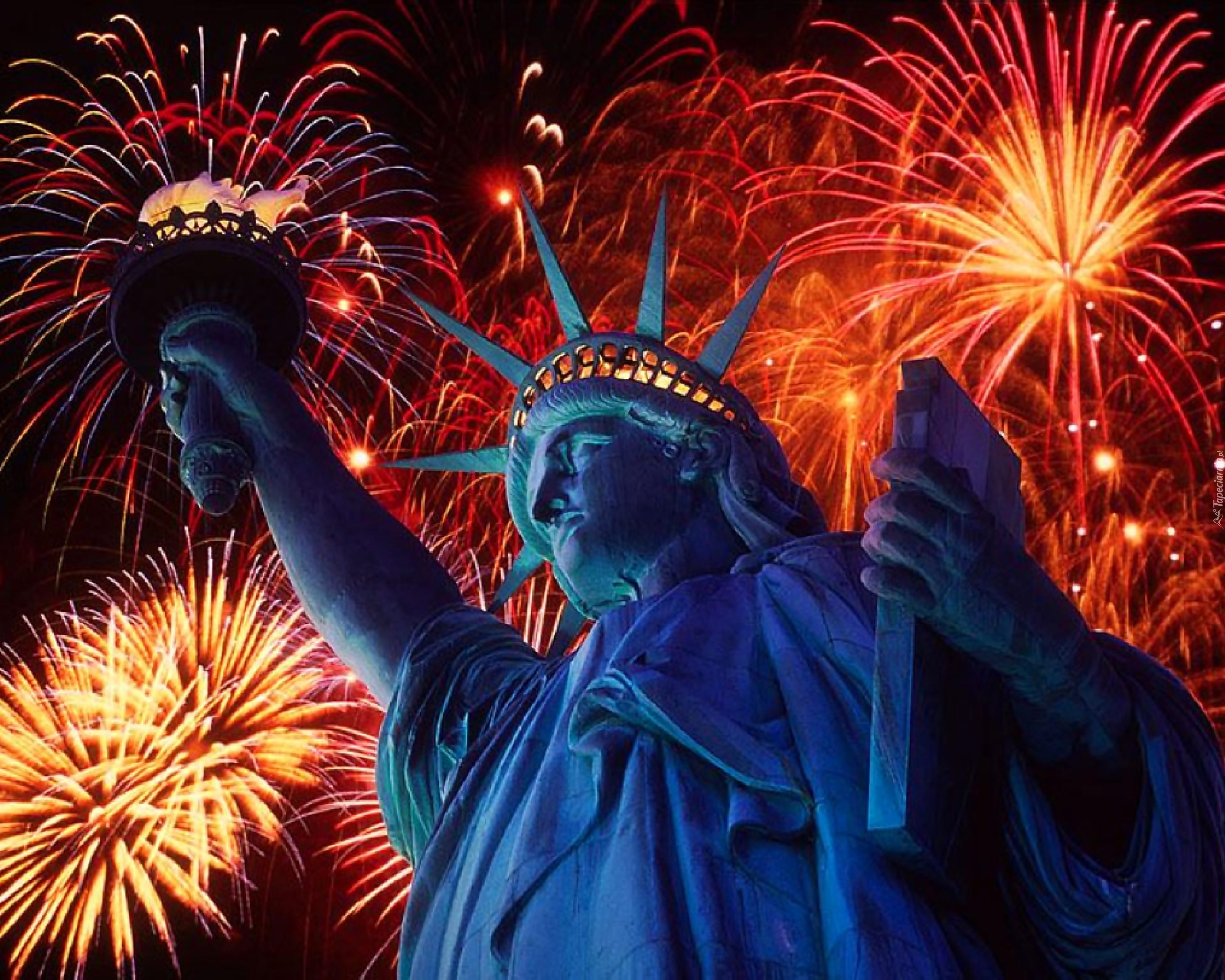 Edytor tapety: Statua, Wolności, Fajerwerki