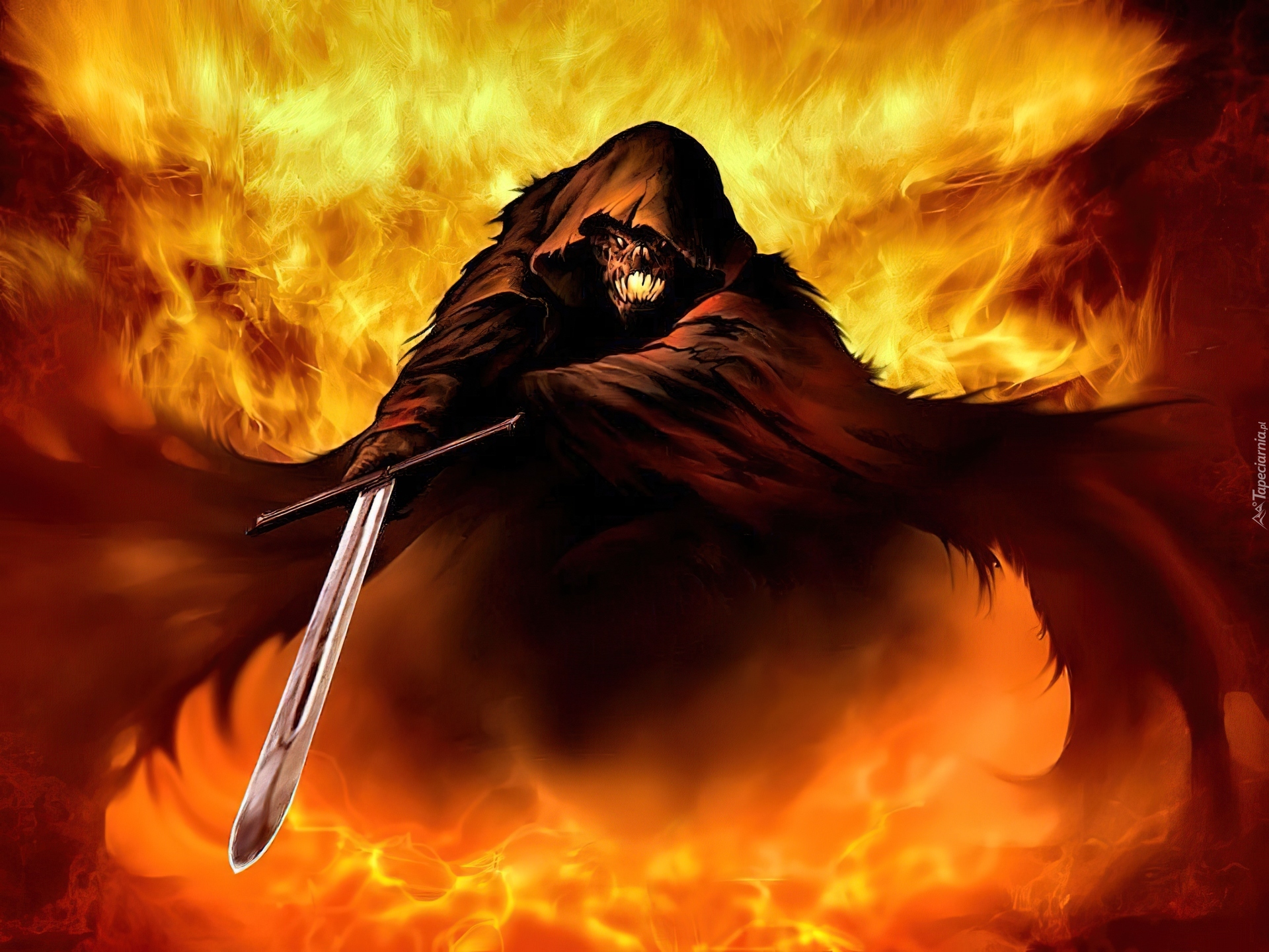 Edytor tapety: Śmierć, Ogień, Miecz, Szata, Kaptur