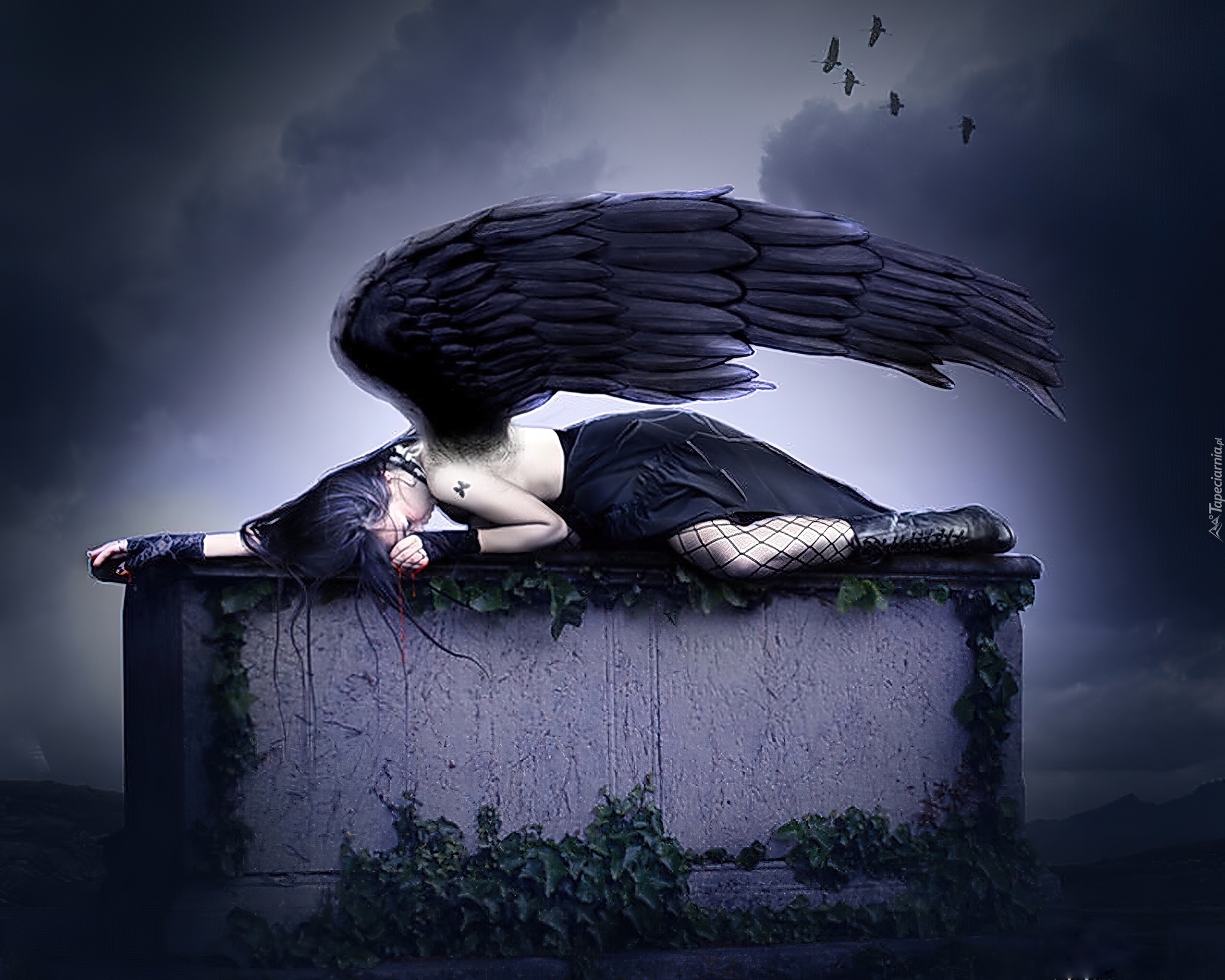 Edytor tapety: Anioł, Noc, Skrzydła