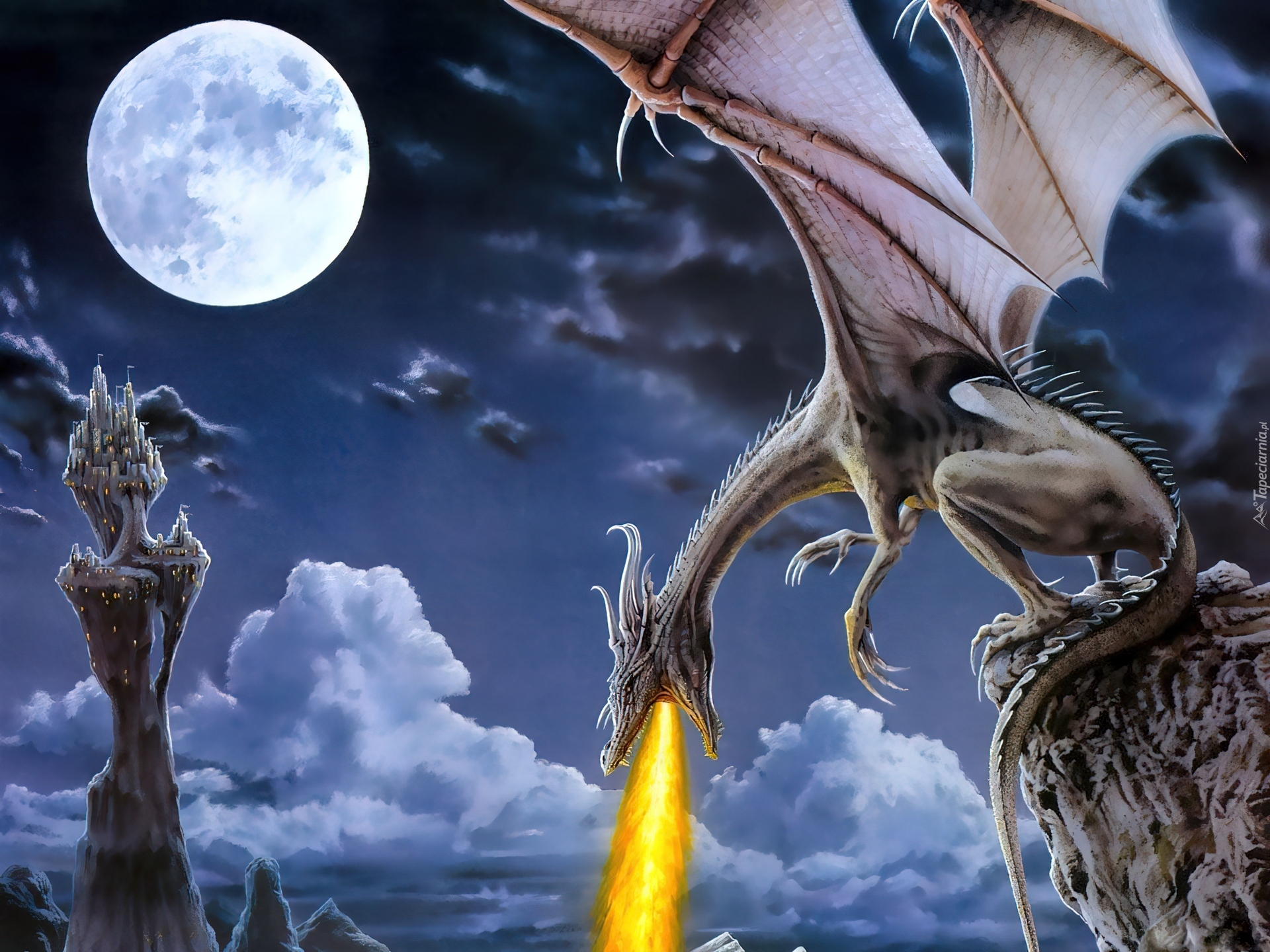 Edytor tapety: Smok, Księżyc, Ogień