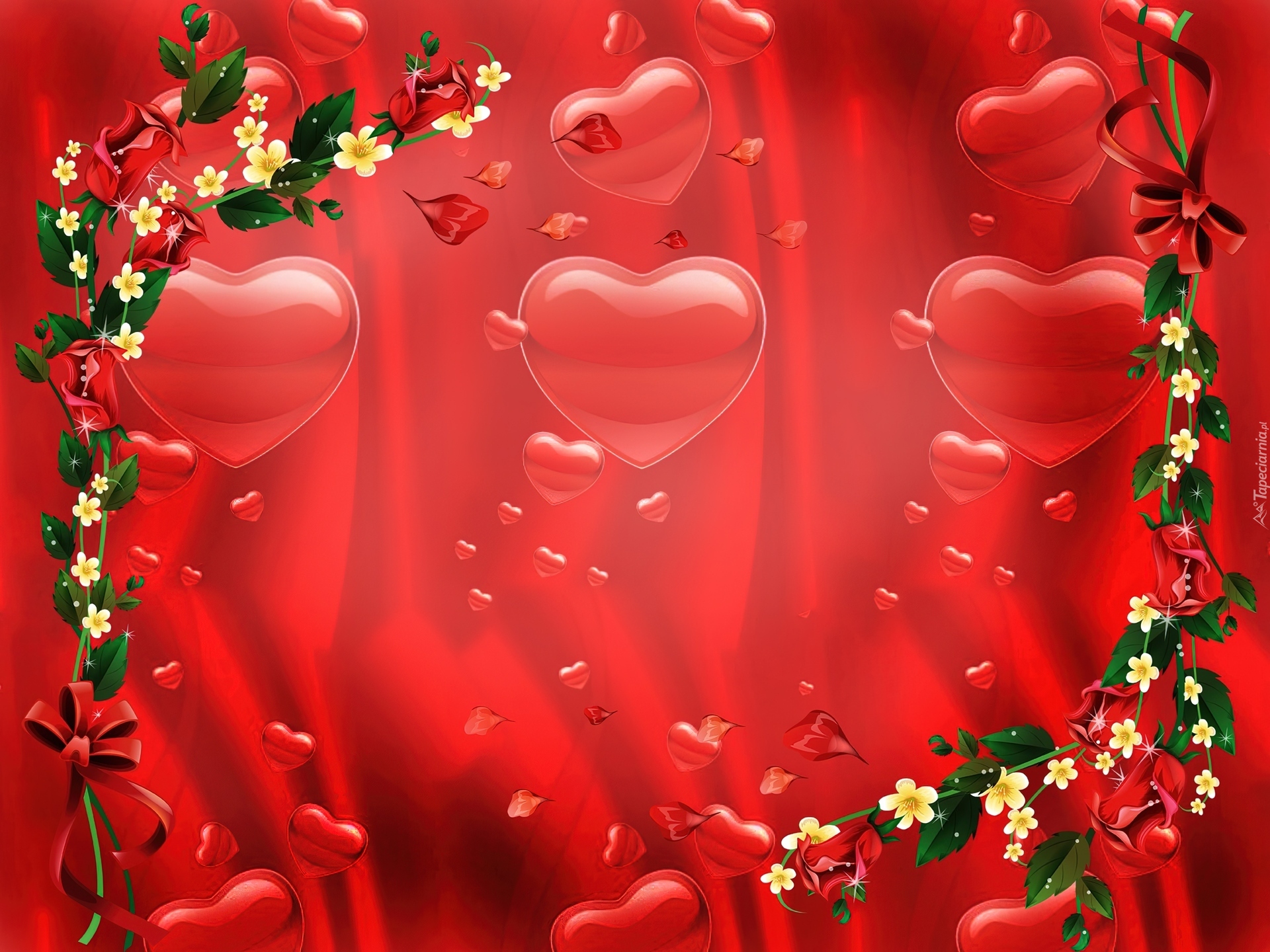 Edytor tapety: Czerwone, Serca, Żółte, Kwiatki