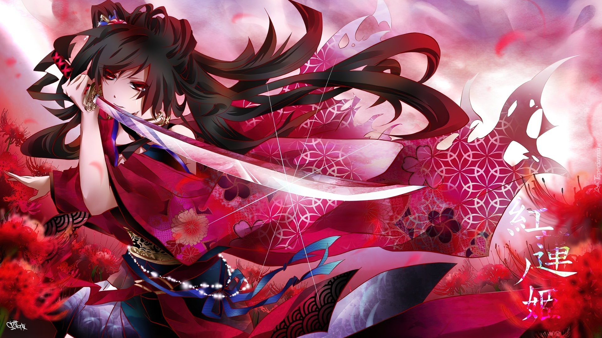 Edytor tapety: Dziewczyna, Miecz, Kwiatki