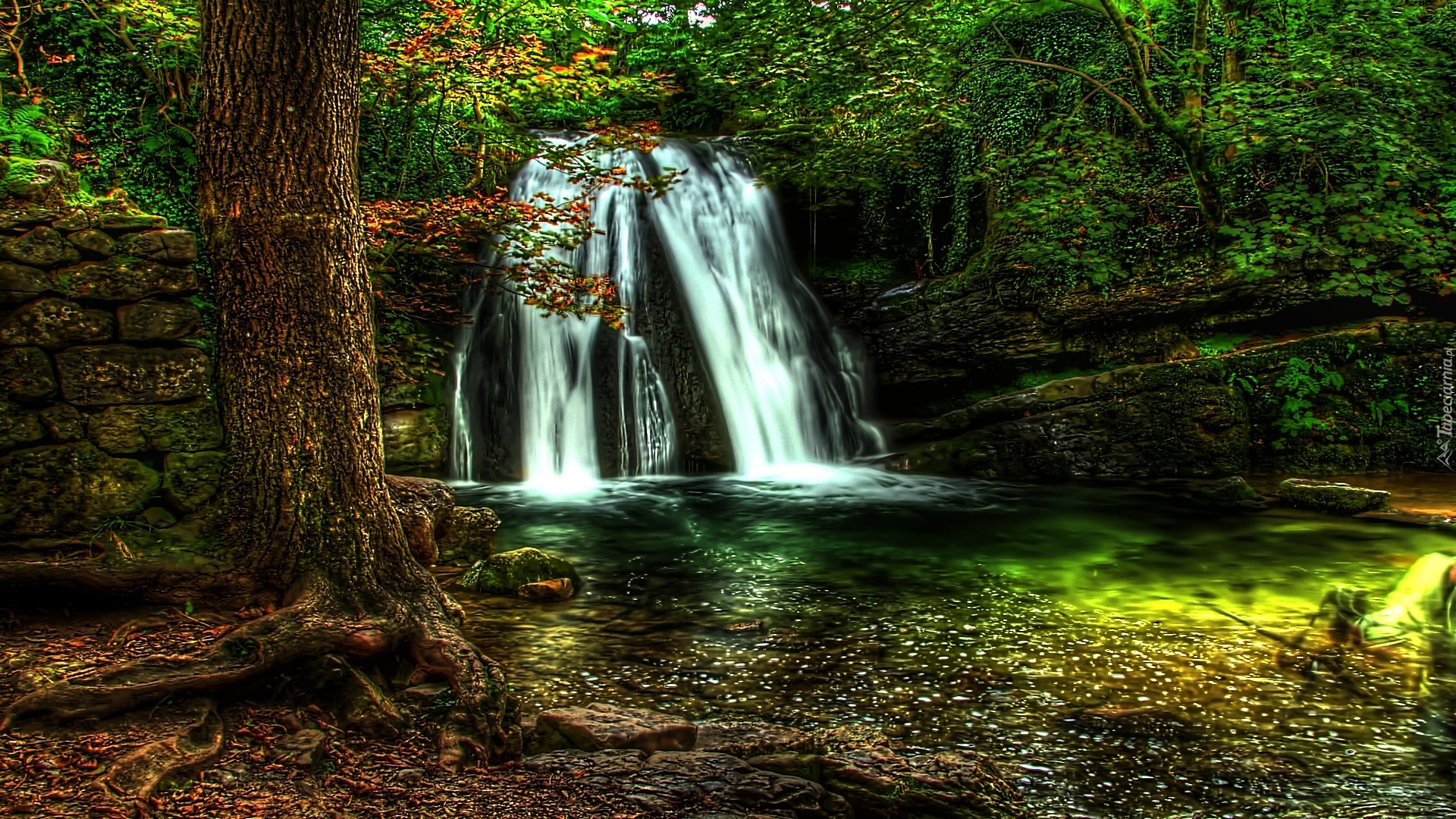 Edytor tapety: Wodospad, Dzewa, Woda