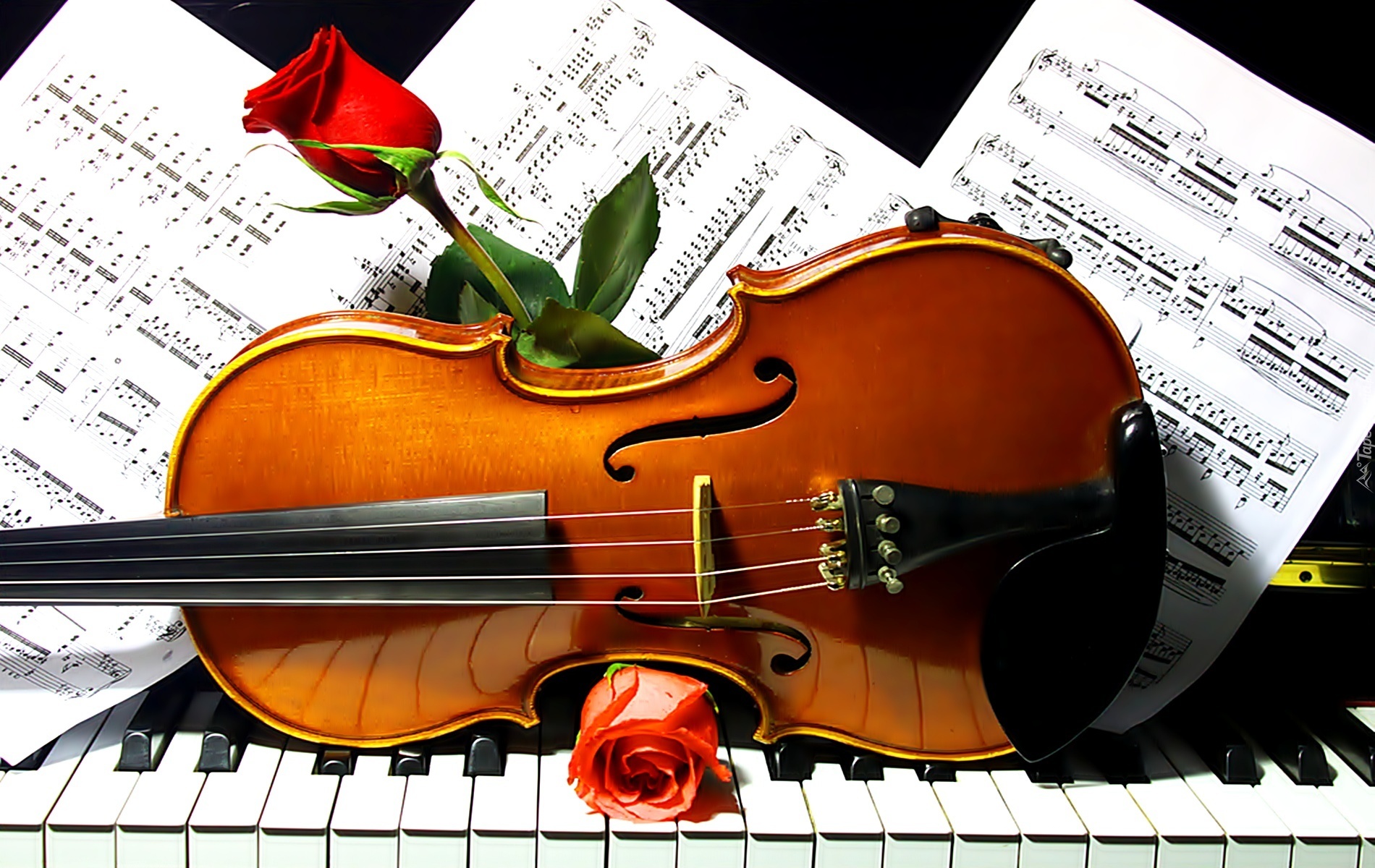 Edytor tapety: Skrzypce, Fortepian, Nuty, Róże
