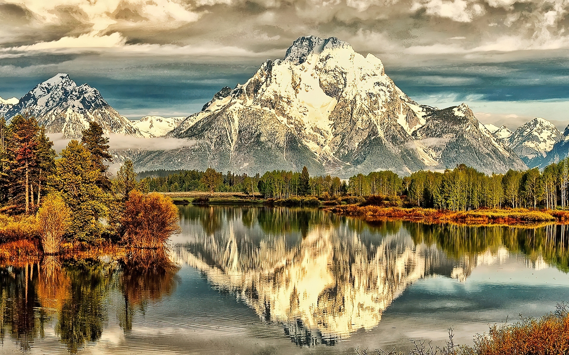 Edytor tapety: Odbicie, Lustrzane, Góry, Jezioro