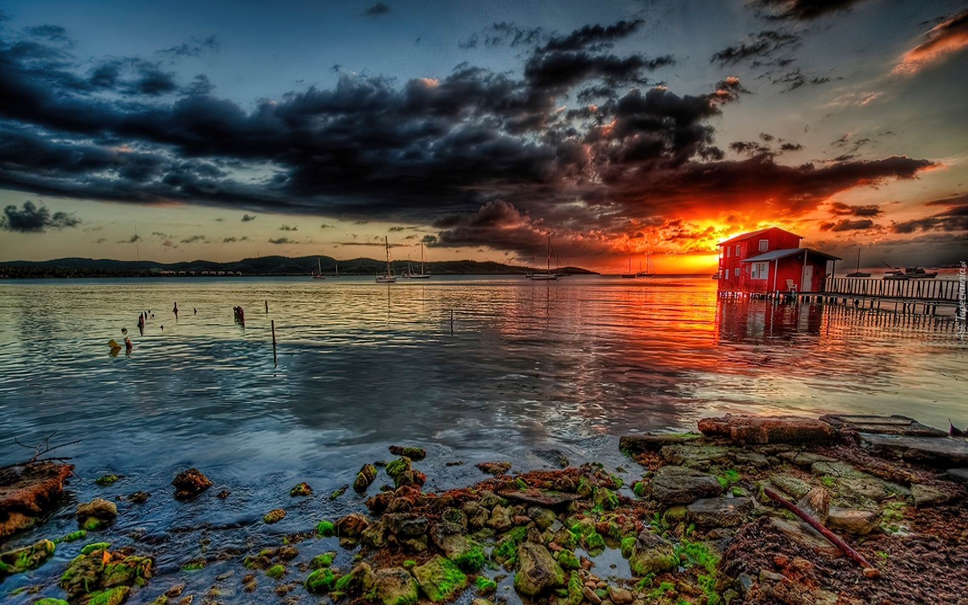 Edytor tapety: Mostek, Drewniany, Domek, Morze