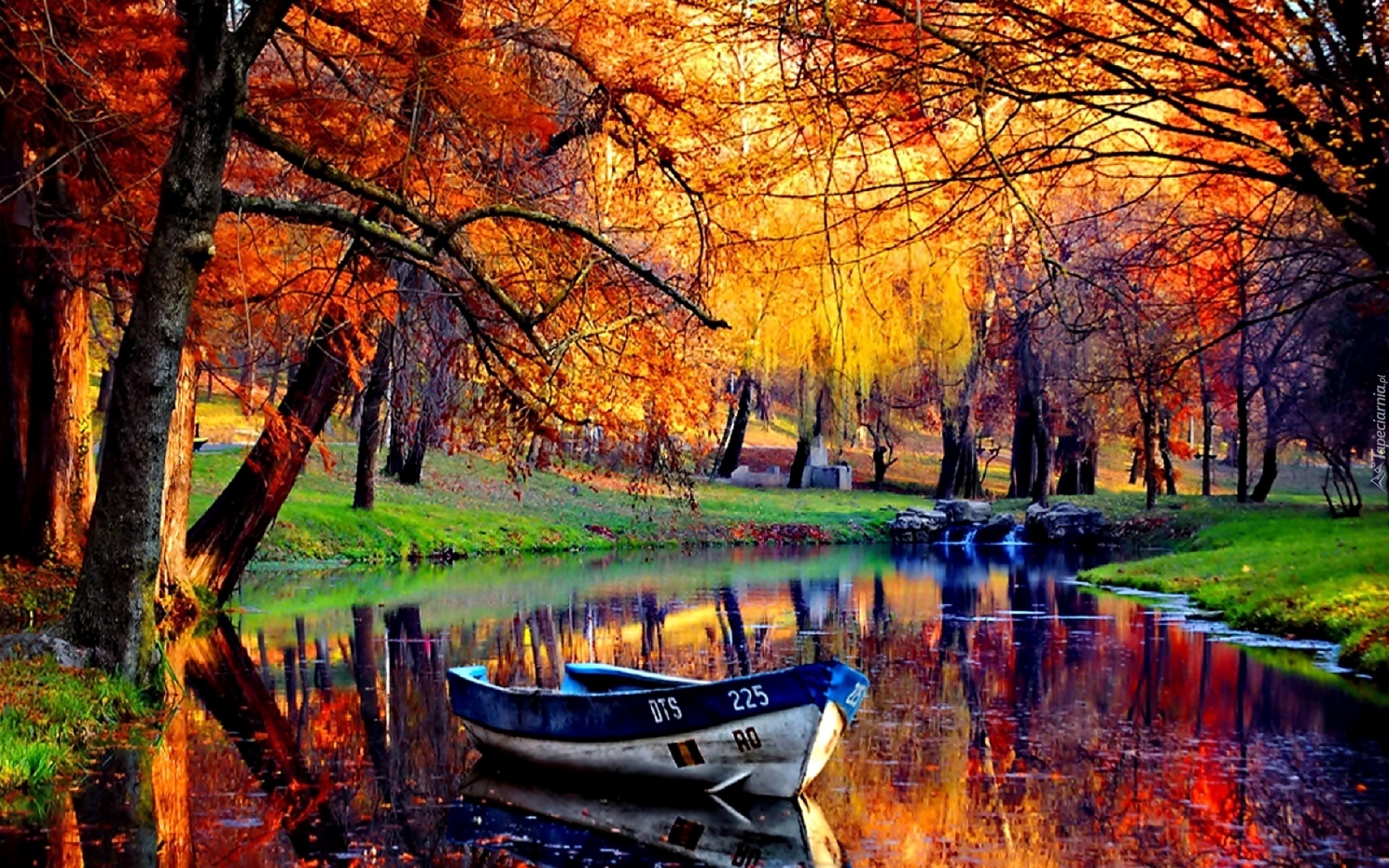 Edytor tapety: Jesień, Rzeka, Łódka