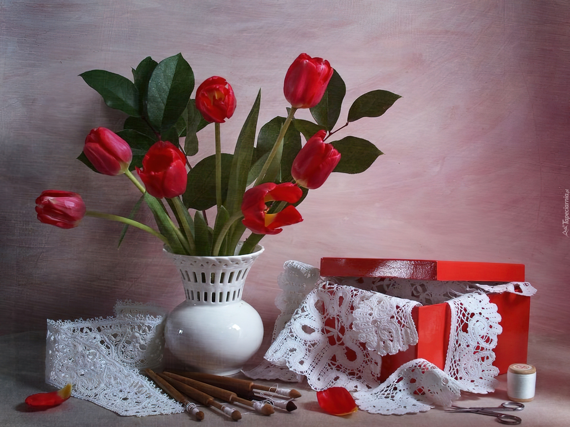 Edytor tapety: Wazon, Czerwone, Tulipany