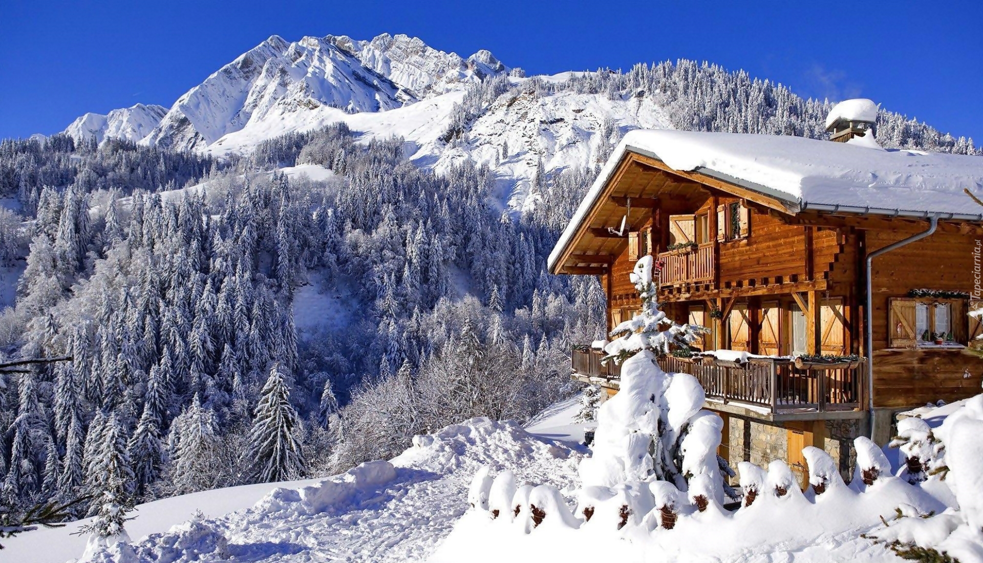 Edytor tapety: Zima, Góry, Drewniany, Dom