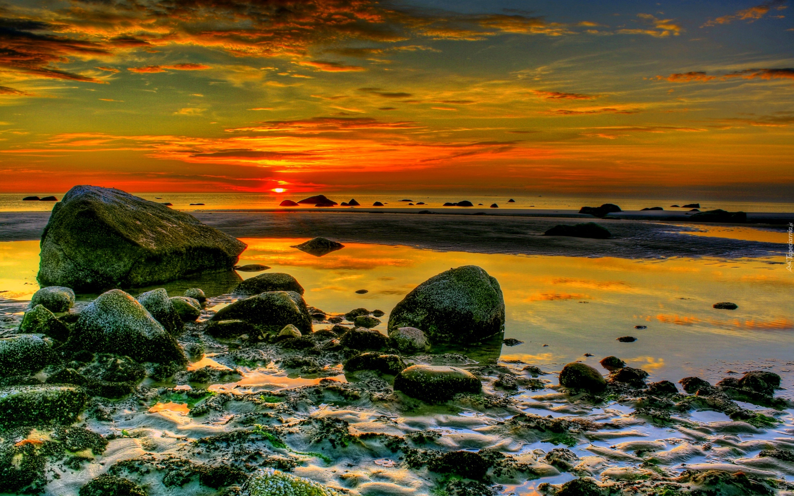 Edytor tapety: Morze, Kamienie, Zachód, Słońca