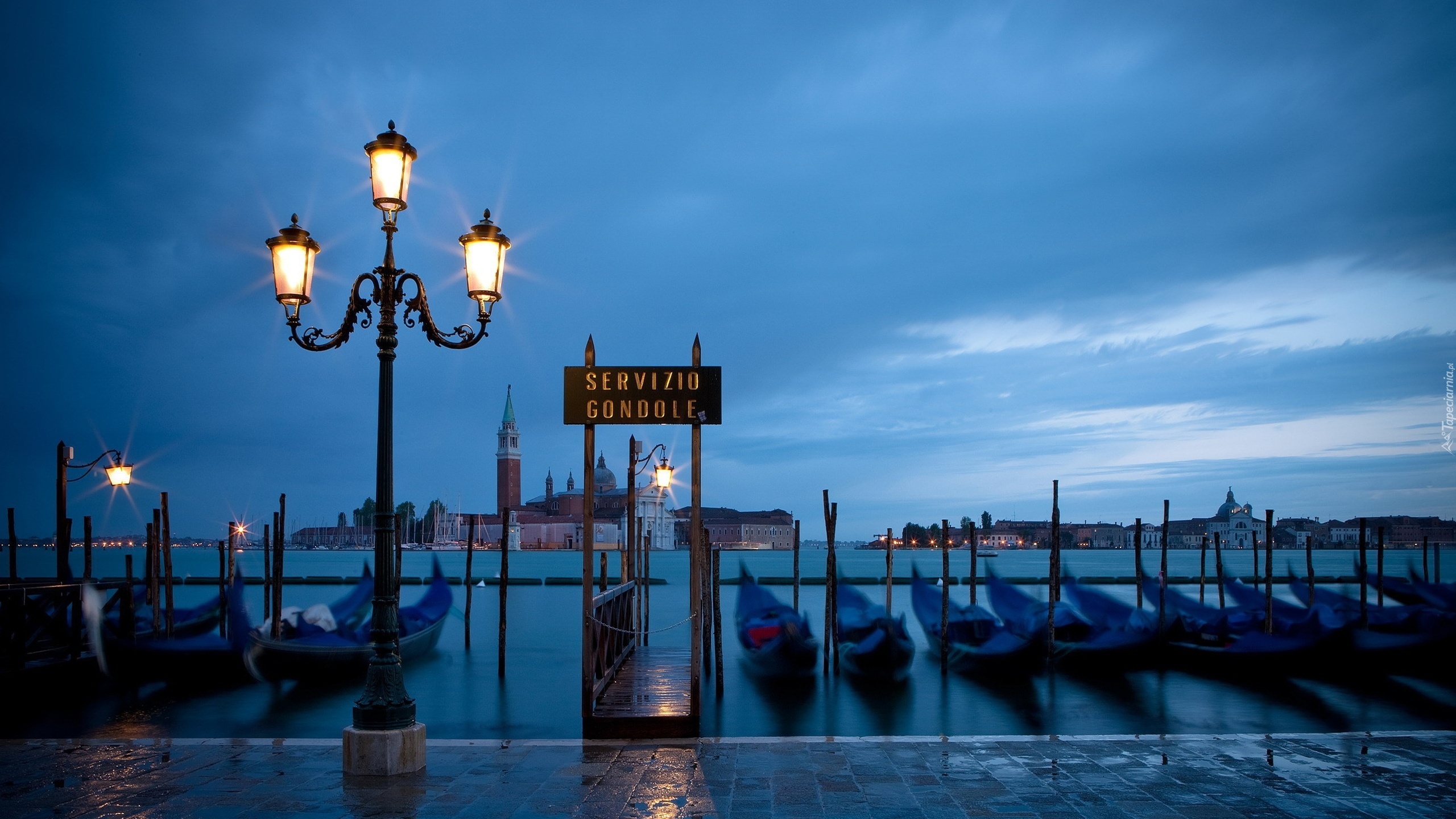 Edytor tapety: Wenecja, Przystań, Gondole, Latarnia
