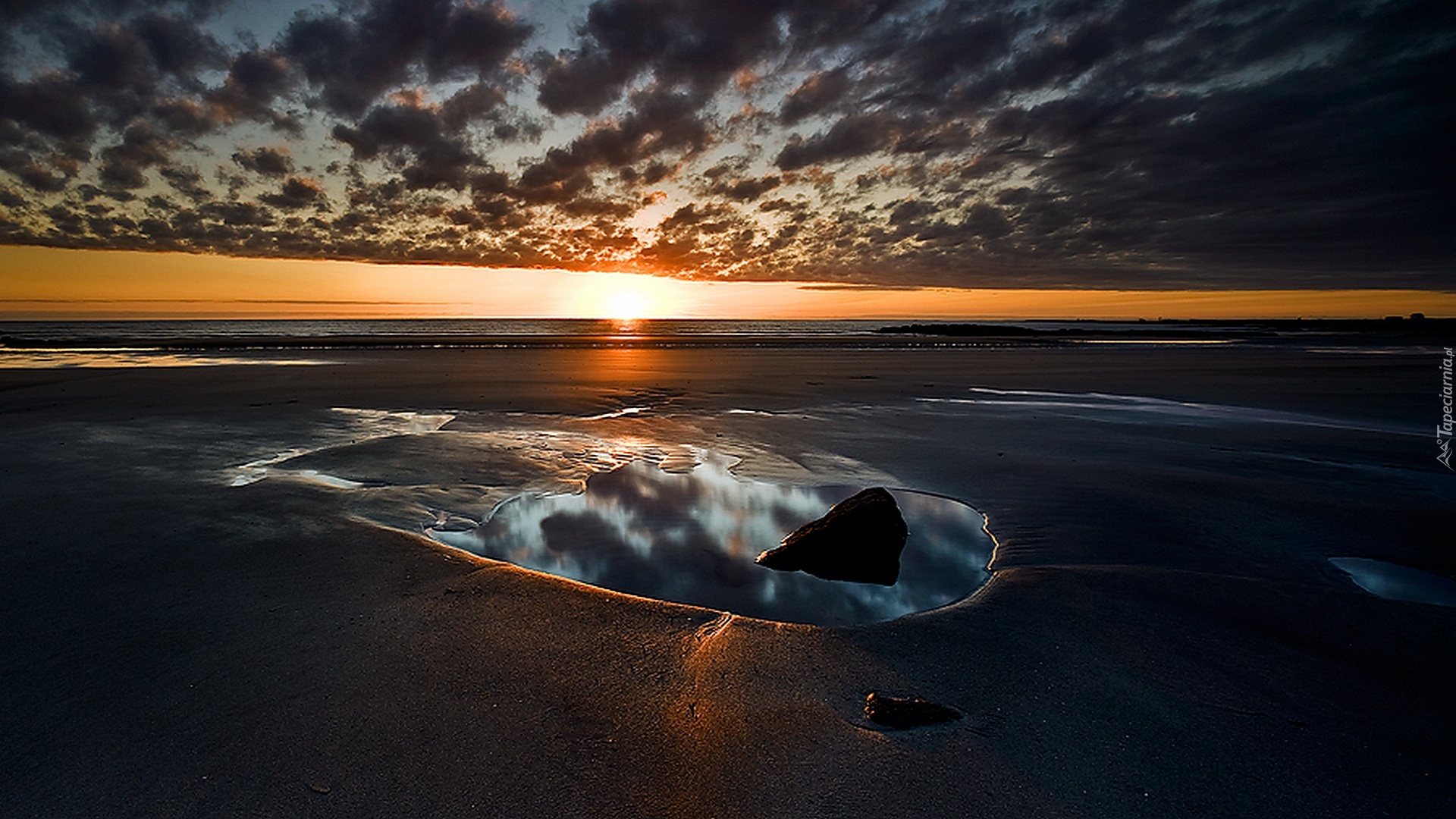 Edytor tapety: Odbicie, Lustrzane, Plaża, Zachód, Słońca