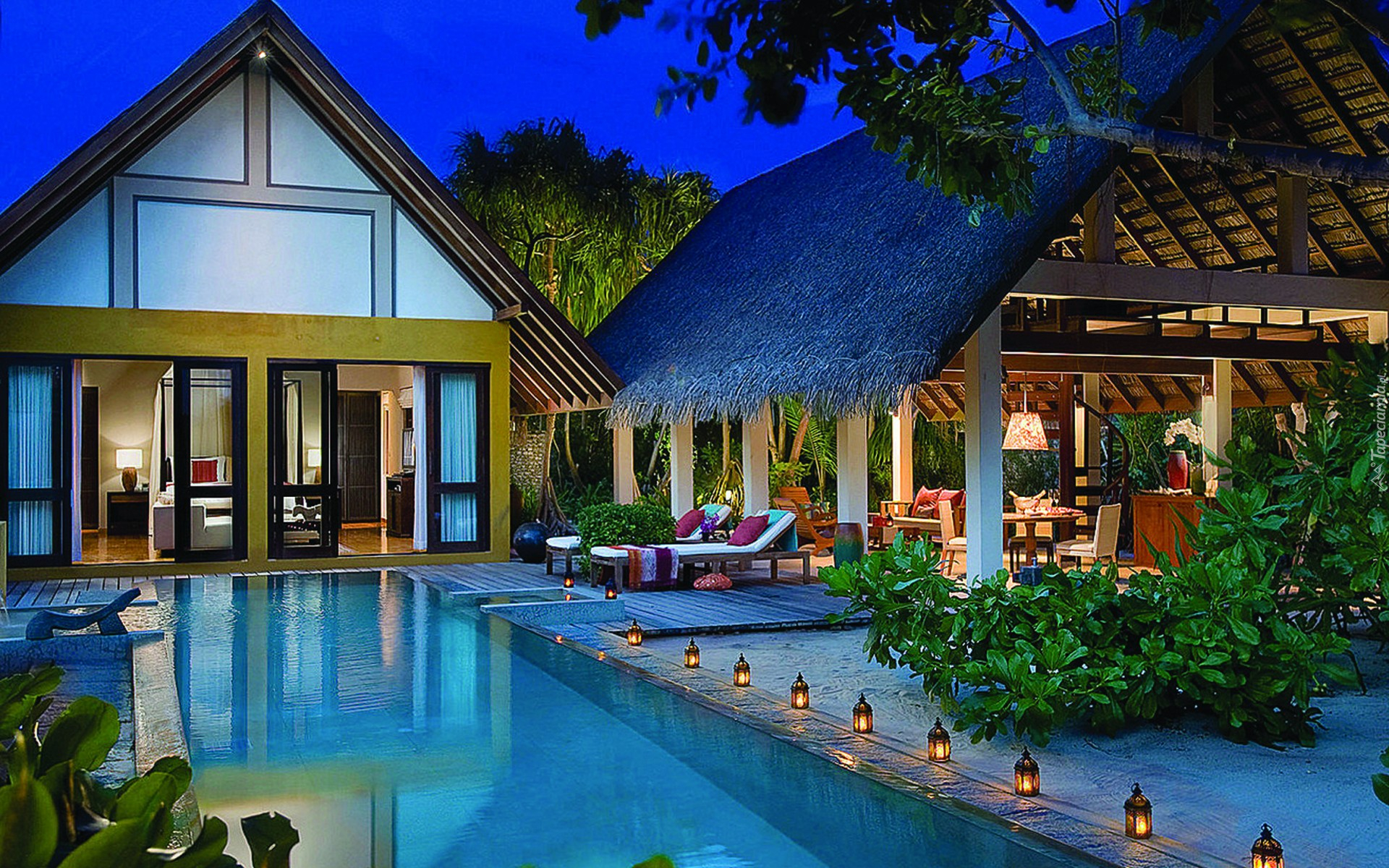 Edytor tapety: Dom, Pergola, Basen