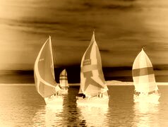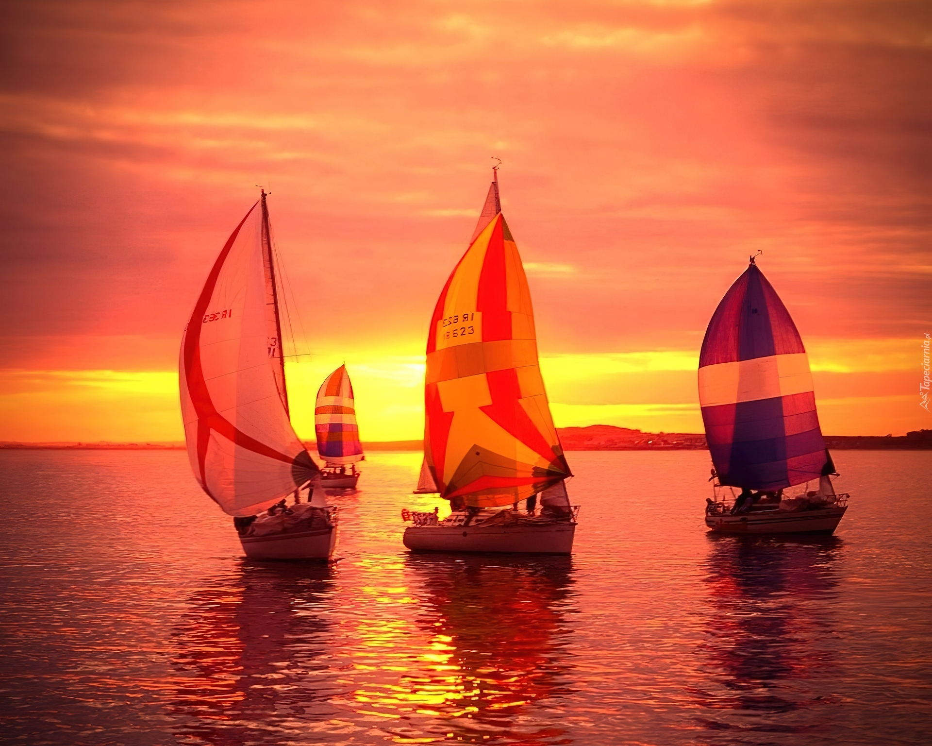 Edytor tapety: Morze, Zachód, Słońca, Trzy, Jachty