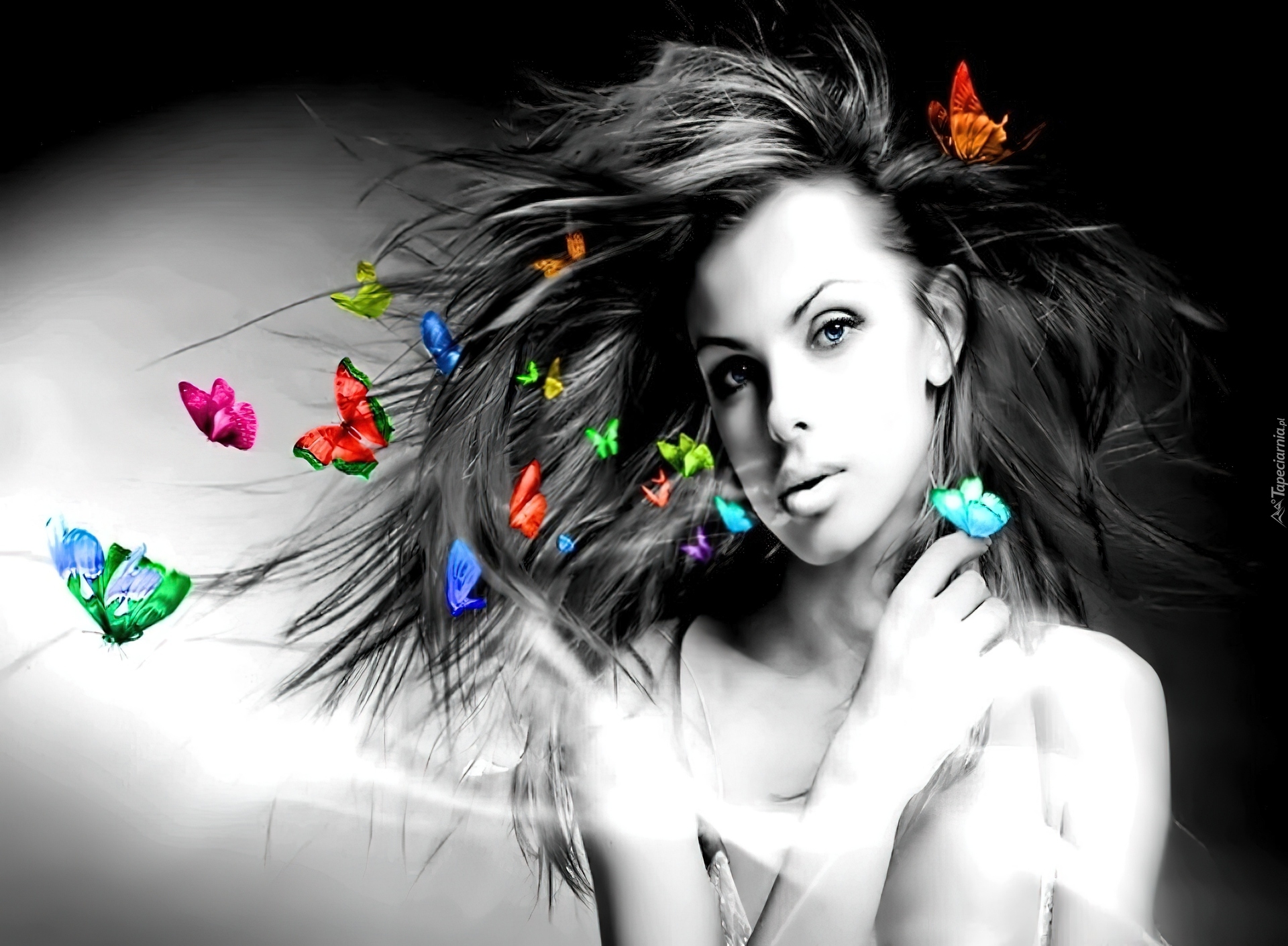 Edytor tapety: Dziewczyna, Kolorowe, Motyle