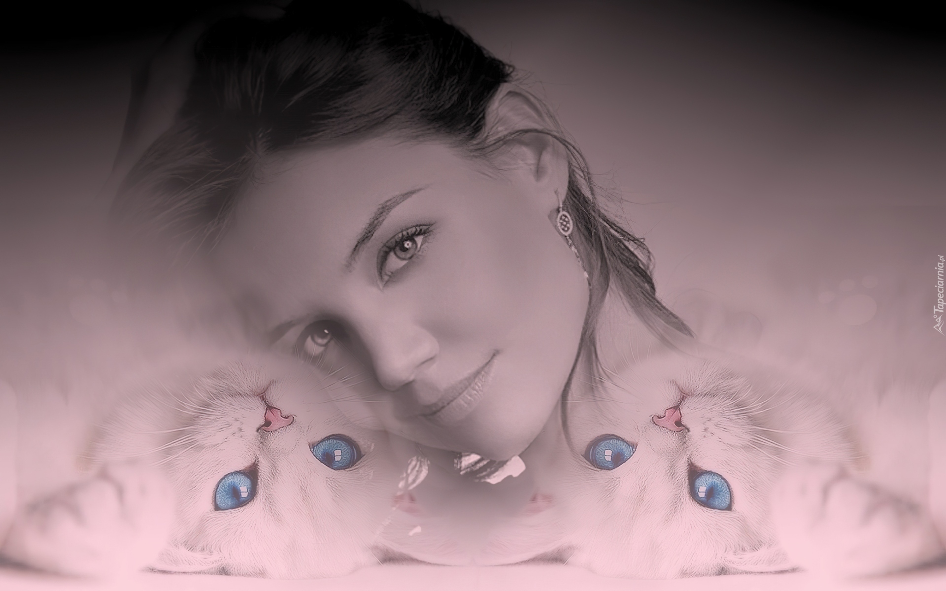 Edytor tapety: Kobieta, Dwa, Białe, Kotki